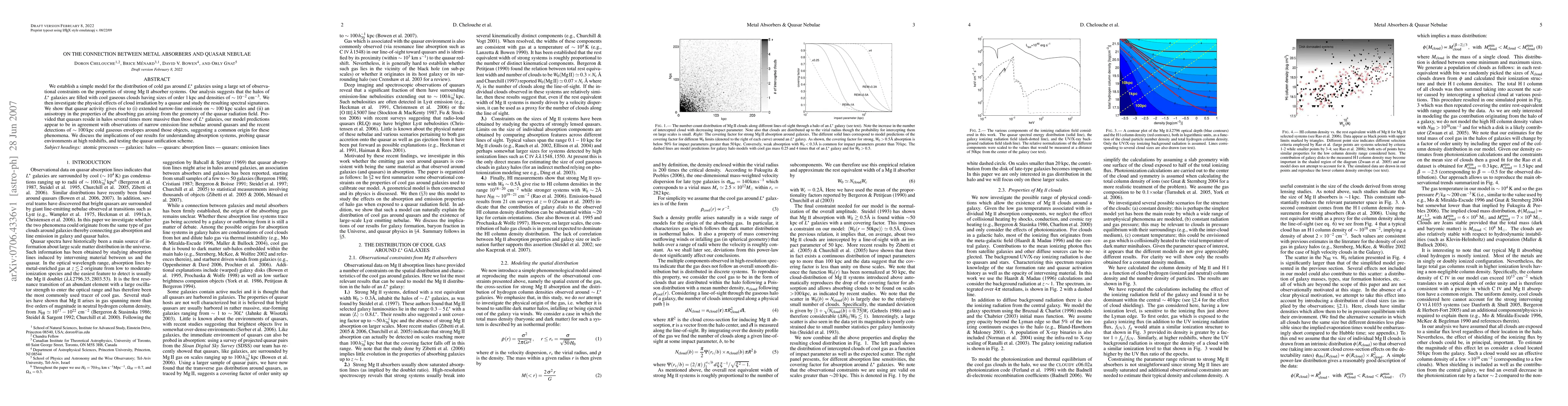 We establish a simple model for the distribution of cold gas around L* galaxies using a large set of observational constraints on the properties of strong MgII absorber systems. Our analysis suggests that the halos of L* galaxies are filled with cool gaseous clouds having sizes of order 1kpc and densities of ~10^{-2} cm^{-3}. We then investigate the physical effects of cloud irradiation by a quasar and study the resulting spectral signatures. We show that quasar activity gives rise to (i) extended narrow-line emission on ~100kpc scales and (ii) an anisotropy in the properties of the absorbing gas arising from the geometry of the quasar radiation field. Provided that quasars reside in halos several times more massive than those of L* galaxies, our model predictions appear to be in agreement with observations of narrow emission-line nebulae around quasars and the recent detections of ~100kpc cold gaseous envelopes around those objects, suggesting a common origin for these phenomena. We discuss the implications of our results for understanding absorption systems, probing quasar environments at high redshifts, and testing the quasar unification scheme.