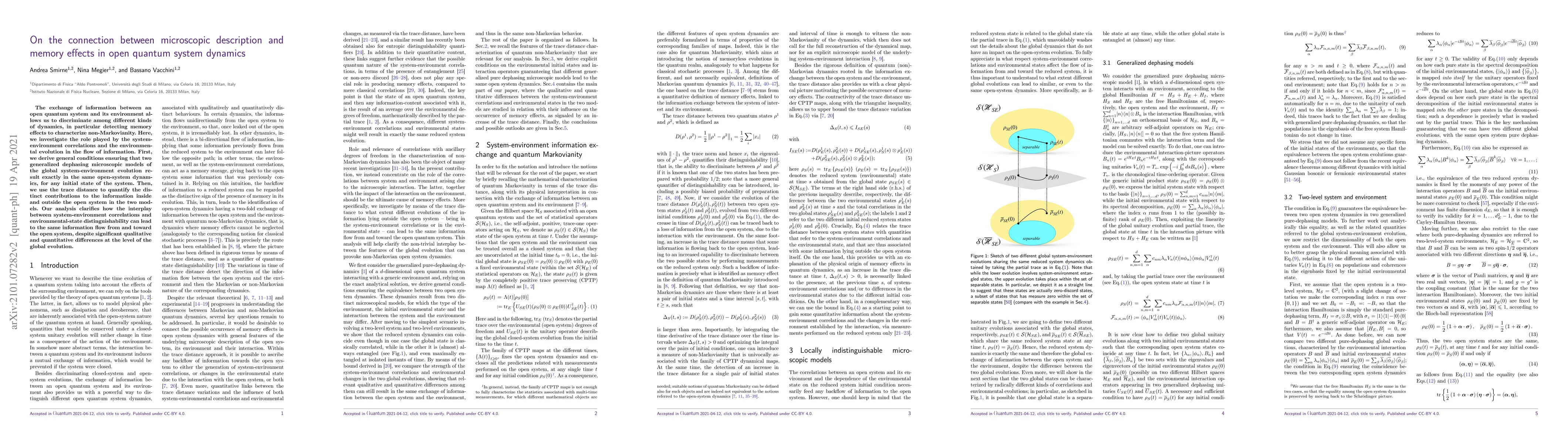 This paper explores the relationship between microscopic descriptions and memory effects in open quantum systems, focusing on how system-environment correlations and environmental evolution influence information flow. It establishes conditions for equivalent open-system dynamics under different microscopic models and uses trace distance to quantify information contributions, revealing the complex interplay leading to similar information flow despite differing global evolutions.