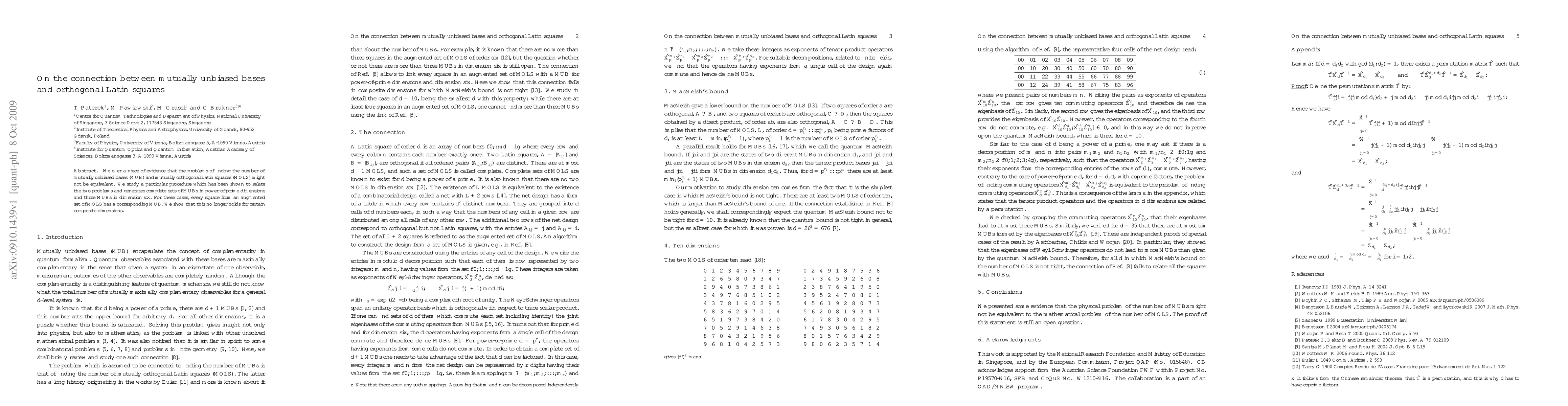 This paper investigates the relationship between mutually unbiased bases (MUB) and orthogonal Latin squares (MOLS), finding that while the two are connected in power-of-prime dimensions, this correspondence does not hold for all composite dimensions. It highlights a specific procedure generating MUBs and MOLS in certain dimensions but reveals discrepancies in others.