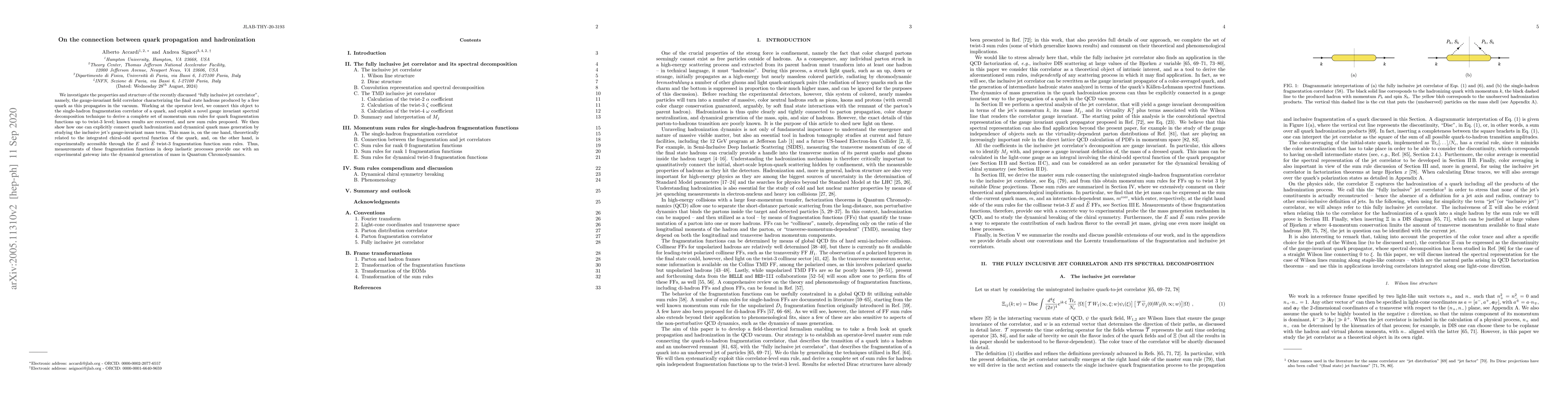 This paper explores the relationship between quark propagation and hadronization through the fully inclusive jet correlator, linking it to the single-hadron fragmentation correlator and deriving new momentum sum rules for quark fragmentation functions. It also connects quark hadronization to dynamical mass generation, providing an experimental pathway via deep inelastic processes.