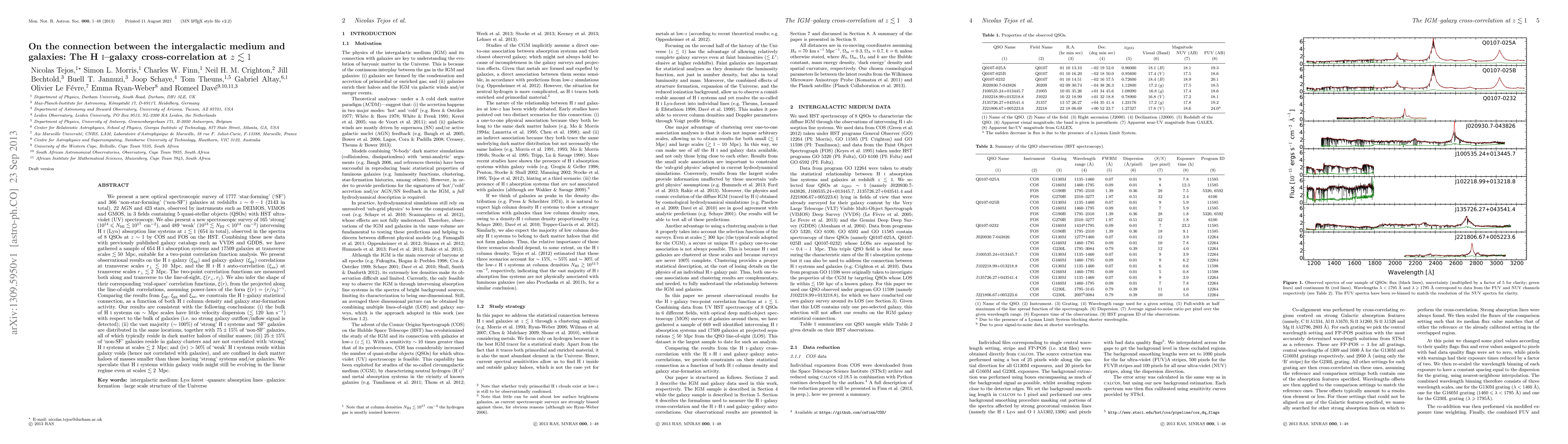 We present a new optical spectroscopic survey of 1777 'star-forming' ('SF') and 366 'non-star-forming' ('non-SF') galaxies at redshifts z < 1 (2143 in total), 22 AGN and 423 stars, observed by instruments such as DEIMOS, VIMOS and GMOS, in 3 fields containing 5 quasi-stellar objects (QSOs) with HST UV spectroscopy. We also present a new spectroscopic survey of 165 'strong' (10^14 < NHI < 10^17 cm^-2), and 489 'weak' (10^13 < NHI < 10^14 cm^-2) intervening HI absorption line systems at z < 1 (654 in total), observed in the spectra of 8 QSOs by COS and FOS on the HST. Combining these new data with previously published galaxy catalogs such as VVDS and GDDS, we have gathered a sample of 654 HI absorption systems and 17509 galaxies at transverse scales < 50 Mpc. We present observational results on the HI-galaxy and galaxy-galaxy correlations at transverse scales r < 10 Mpc, and the HI-HI auto-correlation at transverse scales r < 2 Mpc. The two-point correlation functions are measured both along and transverse to the line-of-sight. We constrain the HI-galaxy statistical connection, as a function of both HI column density and galaxy star-forming activity. Our results are consistent with the following conclusions: (1) the bulk of HI systems on Mpc scales have little velocity dispersion (<120 km/s) with respect to the bulk of galaxies; (2) the vast majority of strong HI systems and SF galaxies are distributed in the same locations, together with 75+-15% of non-SF galaxies, all of which typically reside in dark matter haloes of similar masses; (3) 25+-15% of non-SF galaxies reside in galaxy clusters and are not correlated with strong HI systems at scales < 2 Mpc; and (4) 50% of weak HI systems reside within galaxy voids (hence not correlated with galaxies), and are confined in dark matter haloes of masses smaller than those hosting... [abridged]