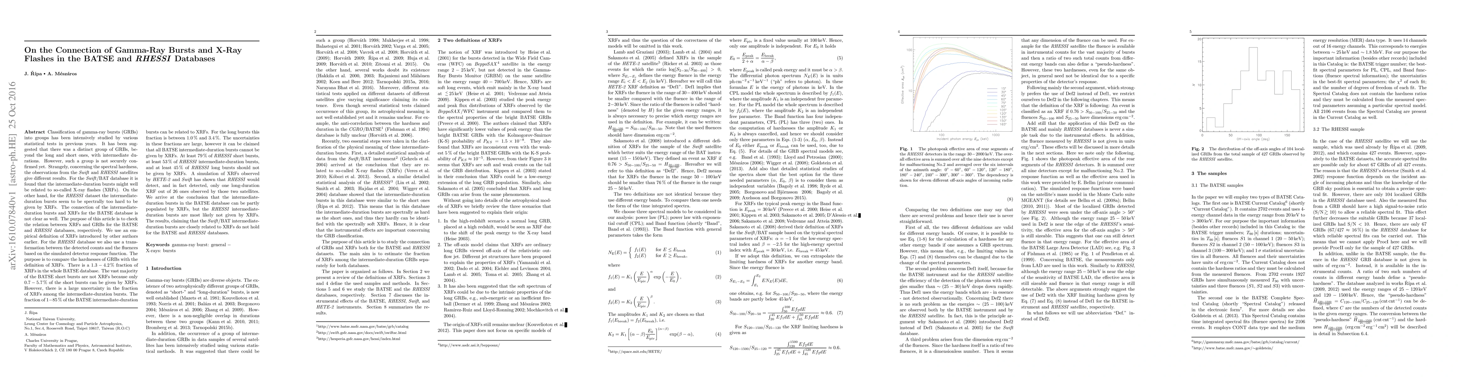 This paper investigates the potential connection between intermediate-duration gamma-ray bursts (GRBs) and X-ray flashes (XRFs) using data from the BATSE and RHESSI databases. It finds that while a significant fraction of BATSE intermediate-duration bursts may relate to XRFs, RHESSI data suggests a different spectral hardness, indicating a complex relationship that remains unclear.