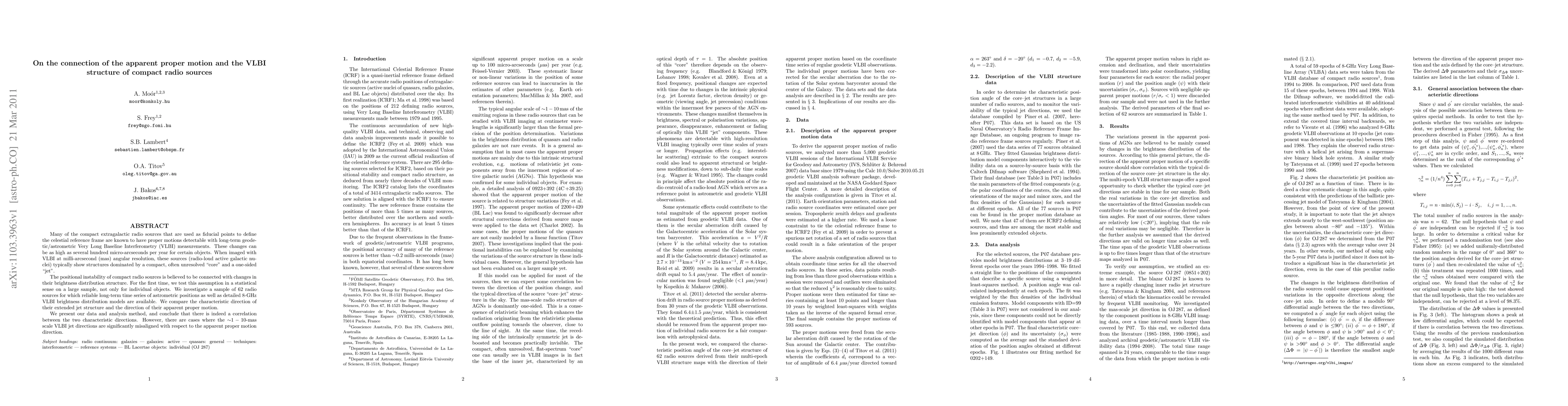 This paper investigates the correlation between the apparent proper motion of 62 compact extragalactic radio sources and their VLBI-observed jet structures, finding a statistical correlation between the two. However, it also identifies instances where the jet direction deviates significantly from the observed proper motion direction.