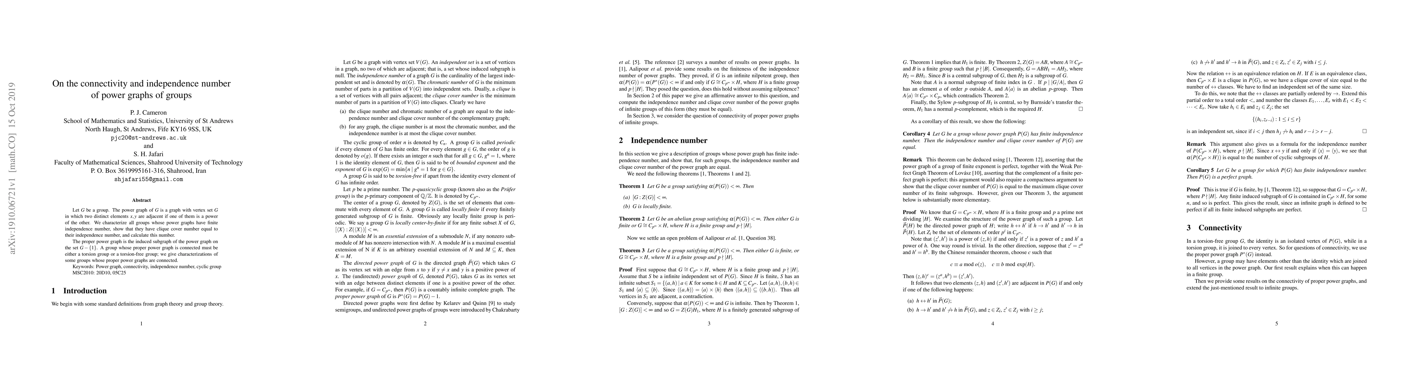 This research paper studies power graphs of groups, characterizing those with finite independence numbers and exploring their properties, including the relationship between independence number and clique cover number.