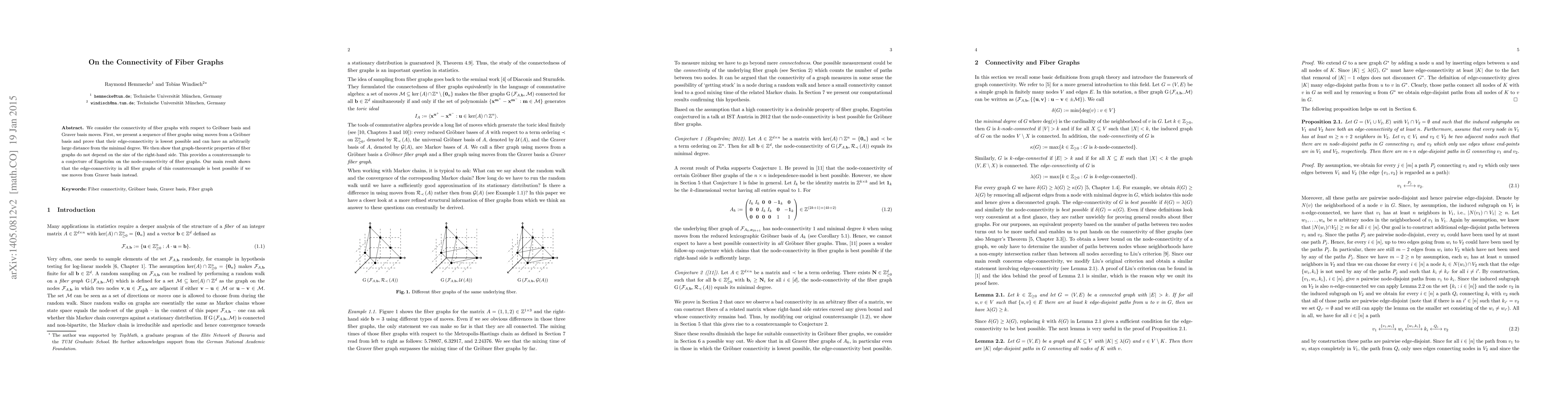 Researchers show that fiber graphs can have low edge-connectivity even with Gr"obner basis moves, contradicting a conjecture, but high edge-connectivity when using Graver basis moves.