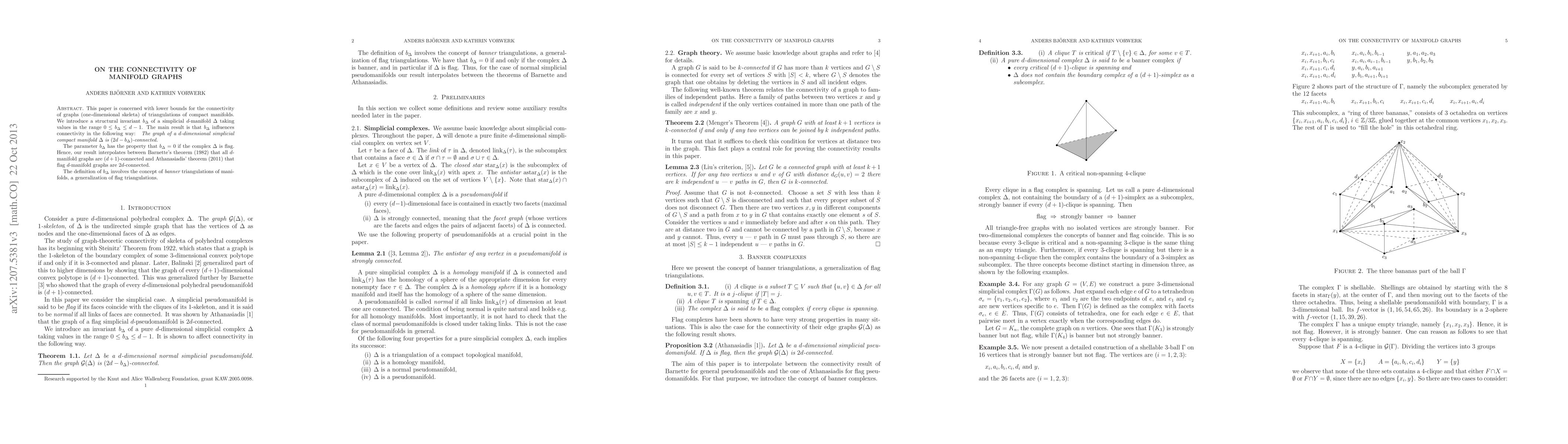A new study establishes a relationship between the connectivity of graphs representing compact manifolds and a structural invariant called b_M, which reveals that d-dimensional manifold graphs are (2d - b_M)-connected.