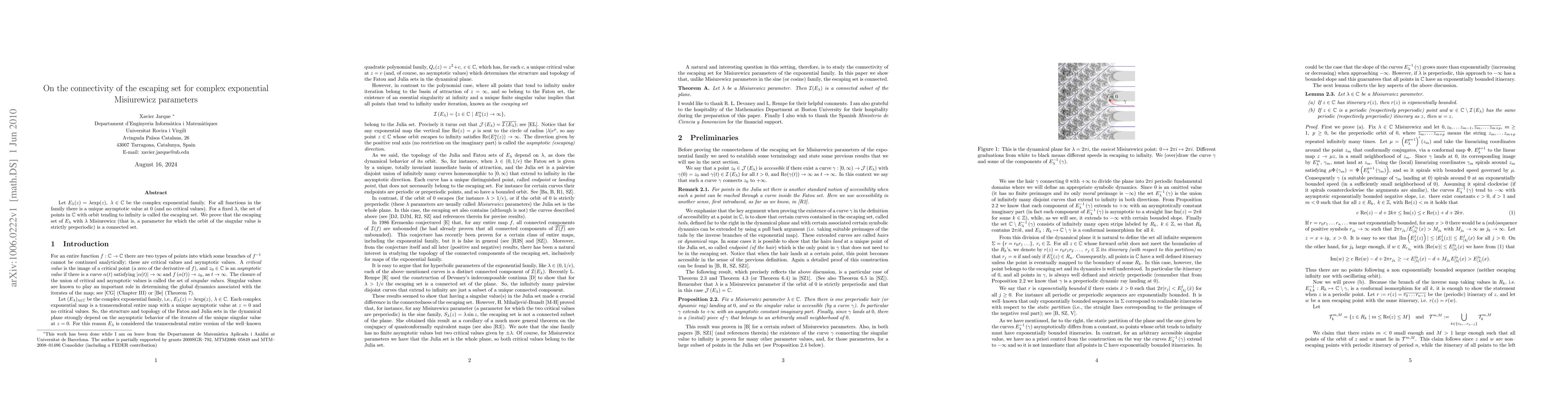 This paper proves that for the complex exponential family $E_{\la}(z)=\la \exp(z)$, the escaping set for Misiurewicz parameters $\la$ is connected, despite the orbit of the singular value being strictly preperiodic. This establishes a unique asymptotic value at 0 without critical values.