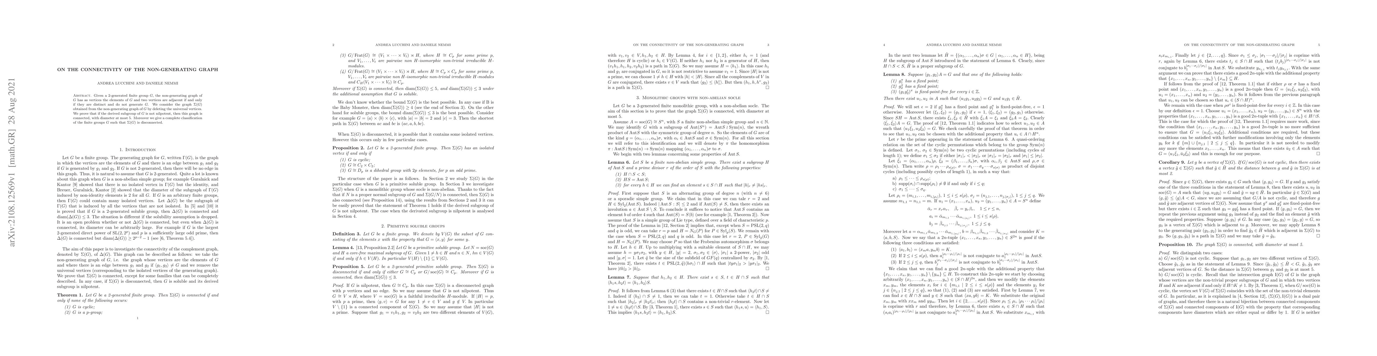 Given a 2-generated finite group $G$, the non-generating graph of $G$ has as vertices the elements of $G$ and two vertices are adjacent if and only if they are distinct and do not generate $G$. We consider the graph $\Sigma(G)$ obtained from the non-generating graph of $G$ by deleting the universal vertices. We prove that if the derived subgroup of $G$ is not nilpotent, then this graph is connected, with diameter at most 5. Moreover we give a complete classification of the finite groups $G$ such that $\Sigma(G)$ is disconnected.