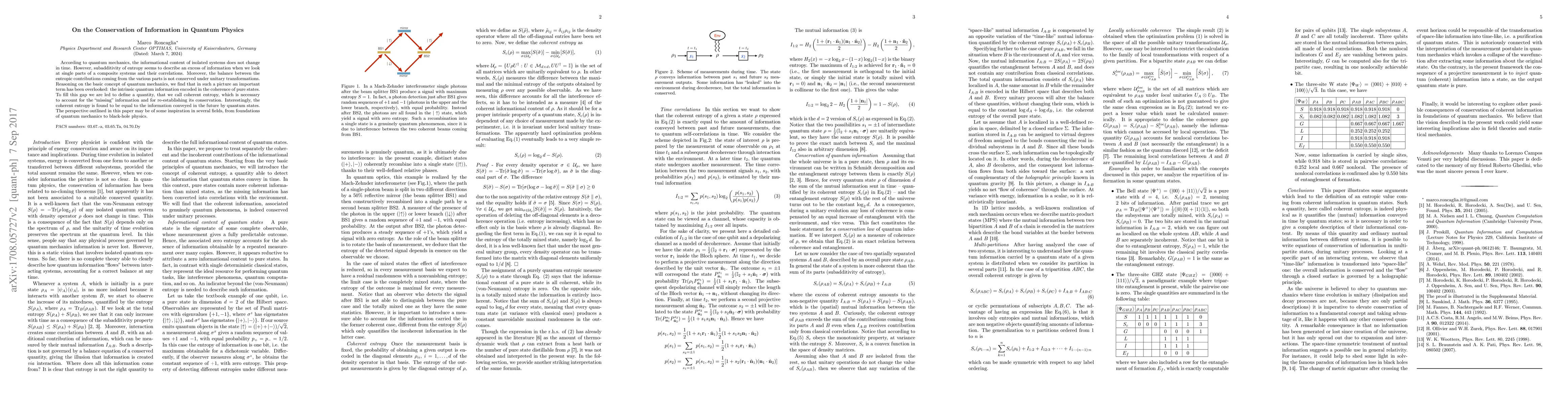 A new concept, coherent entropy, is introduced to account for the conservation of information in quantum systems. It is found to be equal to the information conveyed by future states, resolving a long-standing issue in quantum mechanics.