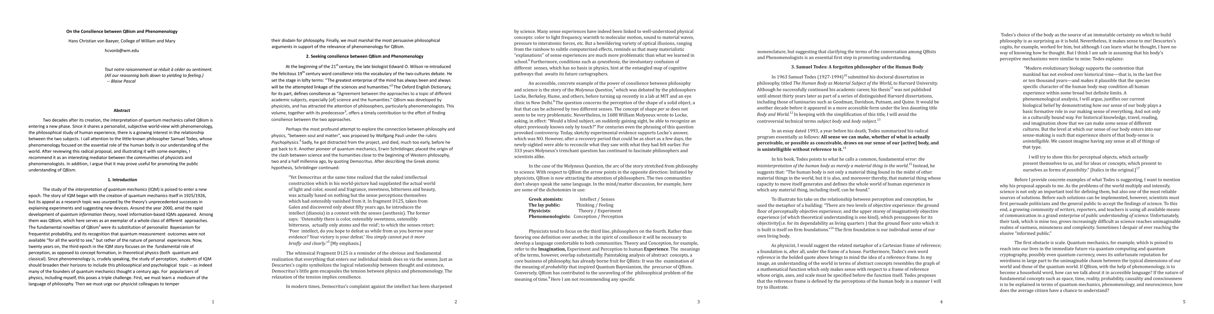 This paper explores the convergence between QBism, a quantum mechanics interpretation emphasizing subjective experience, and phenomenology, the study of human experience. It highlights philosopher Samuel Todes's focus on the human body as a bridge, suggesting his ideas may facilitate dialogue between physicists and phenomenologists and enhance public understanding of QBism.
