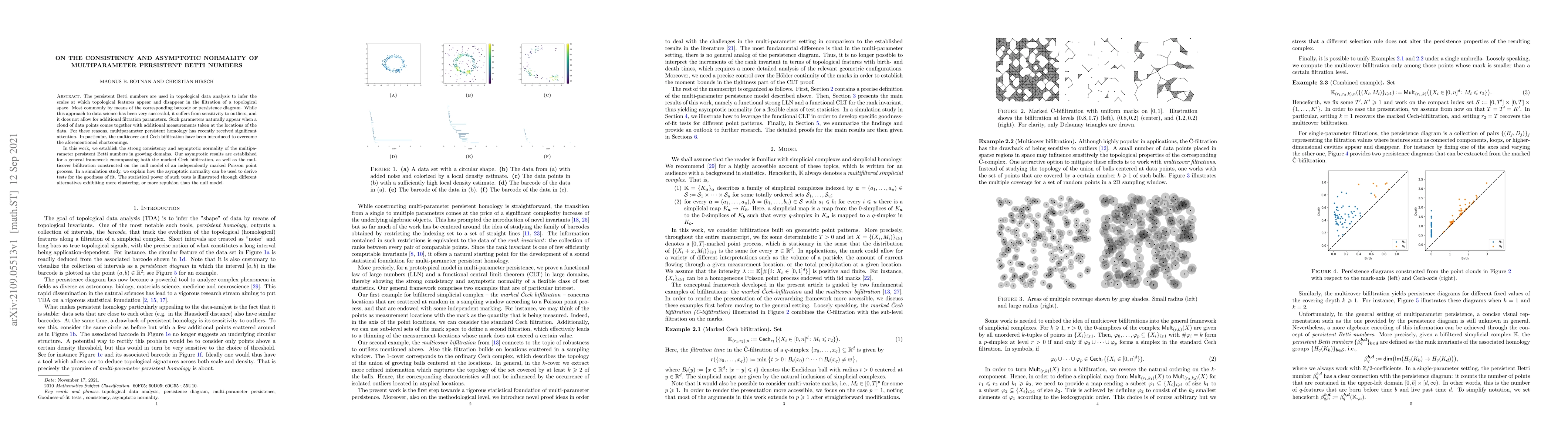 This paper investigates the statistical properties of multiparameter persistent Betti numbers, establishing their strong consistency and asymptotic normality in growing domains. It extends topological data analysis to handle additional filtration parameters, offering new bifiltration methods like the multicover and \v{C}ech bifiltration to mitigate previous limitations and introduces simulation-based goodness-of-fit tests leveraging the derived asymptotic normality.