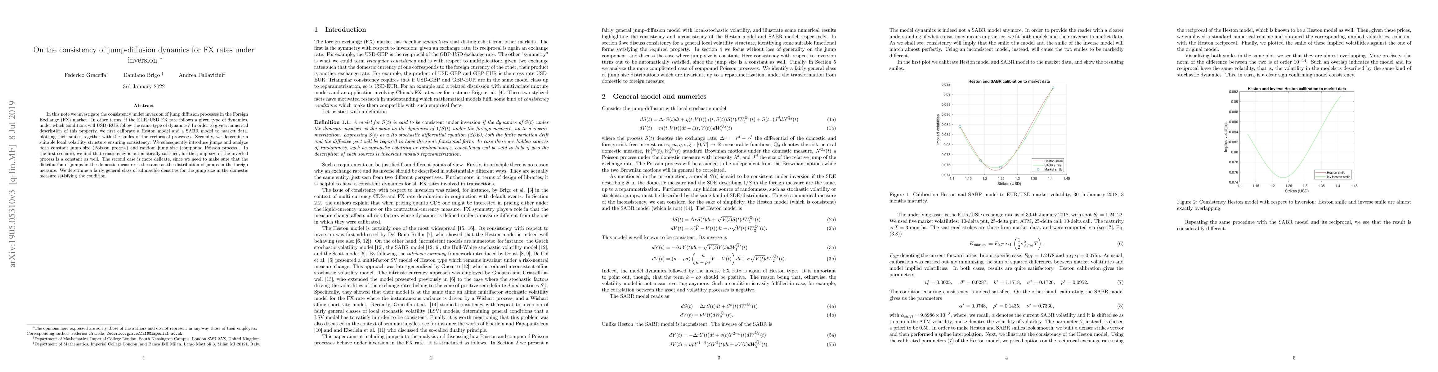 This paper examines the consistency of jump-diffusion dynamics for FX rates under inversion, specifically whether the USD/EUR rate follows the same dynamics as the EUR/USD rate. It calibrates Heston and SABR models and finds that consistency is naturally satisfied for constant jump sizes, while more complex distributions require specific conditions on the jump size densities.