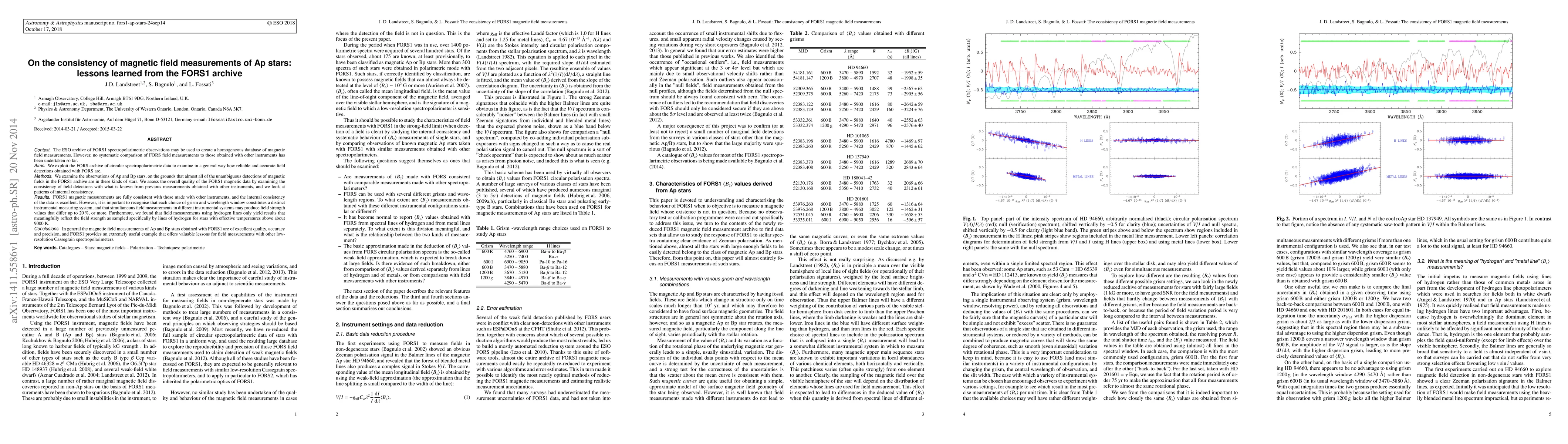 CONTEXT. The ESO archive of FORS1 spectropolarimetric observations may be used to create a homogeneous database of magnetic field measurements. However, no systematic comparison of FORS field measurements to those obtained with other instruments has been undertaken so far. AIMS. We exploit the FORS archive of circular spectropolarimetric data to examine in a general way how reliable and accurate field detections obtained with FORS are. METHODS. We examine the observations of Ap and Bp stars, on the grounds that almost all of the unambiguous detections of magnetic fields in the FORS1 archive are in these kinds of stars. We assess the overall quality of the FORS1 magnetic data by examining the consistency of field detections with what is known from previous measurements obtained with other instruments, and we look at patterns of internal consistency. RESULTS. FORS1 magnetic measurements are fully consistent with those made with other instruments, and the internal consistency of the data is excellent. However, it is important to recognise that each choice of grism and wavelength window constitutes a distinct instrumental measuring system, and that simultaneous field measurements in different instrumental systems may produce field strength values that differ up to 20 %, or more. Furthermore, we found that field measurements using hydrogen lines only yield results that meaningfully reflect the field strength as sampled specifically by lines of hydrogen for stars with effective temperatures above about 9000 K. CONCLUSIONS. In general the magnetic field measurements of Ap and Bp stars obtained with FORS1 are of excellent quality, accuracy and precision, and FORS1 provides an extremely useful example that offers valuable lessons for field measurements with other low- resolution Cassegrain spectropolarimeters.