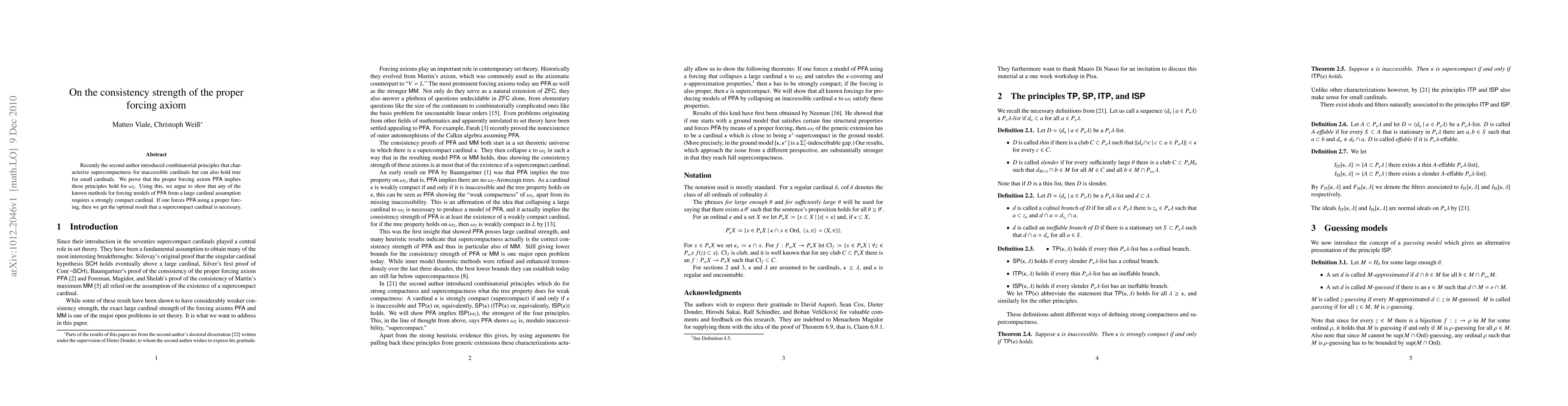 This paper demonstrates that the proper forcing axiom (PFA) implies certain combinatorial principles for $\omega_2$ and argues that any method forcing PFA from a large cardinal assumption requires a strongly compact cardinal, with proper forcing specifically needing a supercompact cardinal.