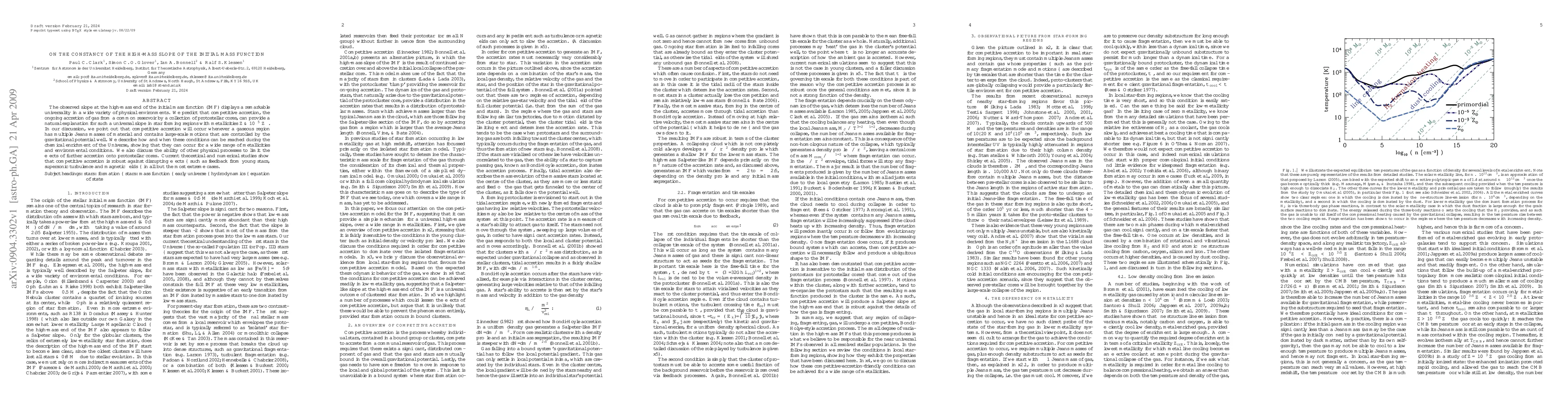The paper proposes competitive accretion as a natural explanation for the universal high-mass slope in the initial mass function (IMF), occurring in regions with specific conditions and metallicities. It highlights the robustness of competitive accretion against disruptive factors like stellar feedback and turbulence.