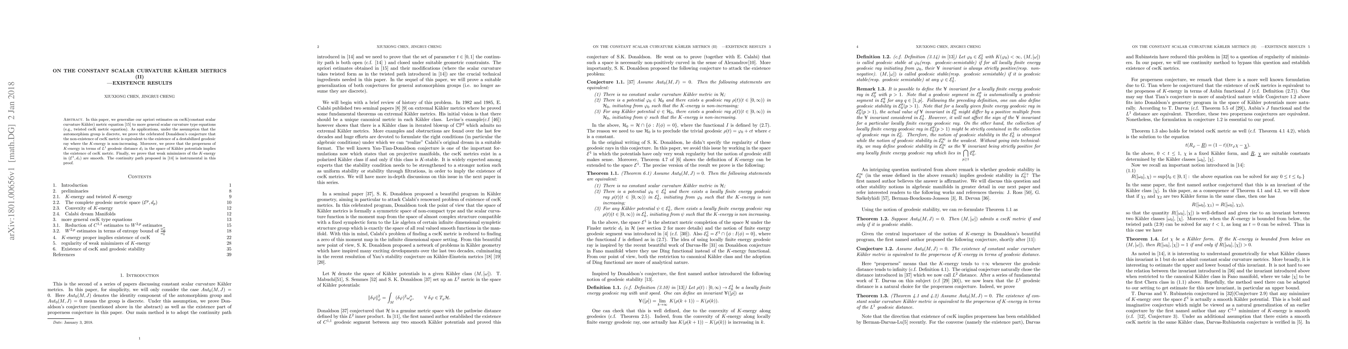 This paper generalizes apriori estimates for constant scalar curvature Kähler (cscK) metrics to broader scalar curvature equations, proving Donaldson's conjecture under discrete automorphism groups and establishing the existence of cscK metrics via properness of $K$-energy. It also demonstrates that weak minimizers of $K$-energy in $(\mathcal{E}^1, d_1)$ are smooth.