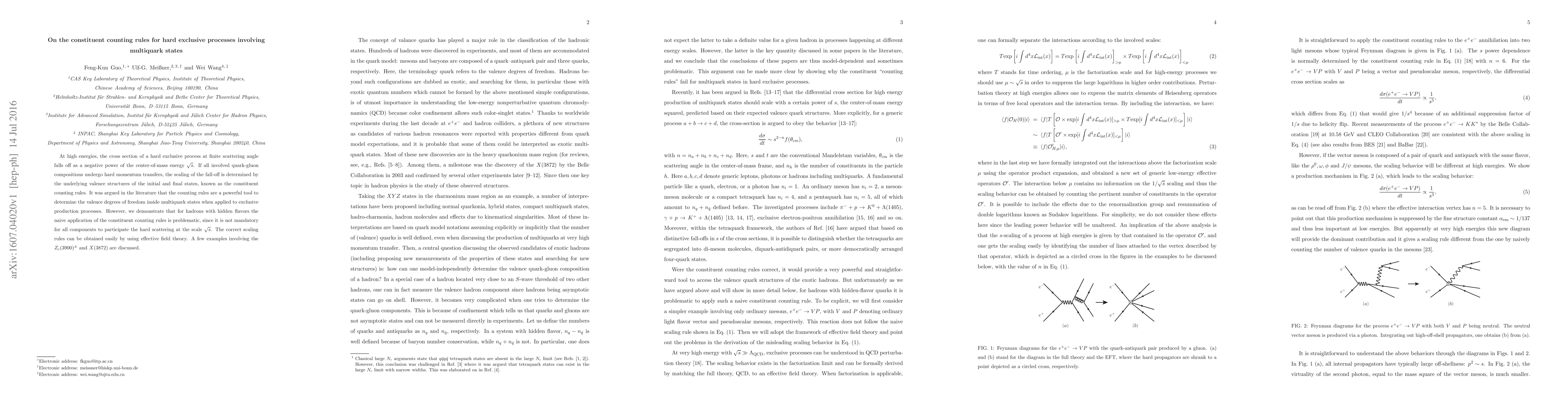 This paper examines the constituent counting rules for hard exclusive processes involving multiquark states, showing that naive applications are flawed for hadrons with hidden flavors. It proposes using effective field theory to derive the correct scaling rules, illustrated with examples like the $Z_c(3900)^\pm$ and $X(3872)$.