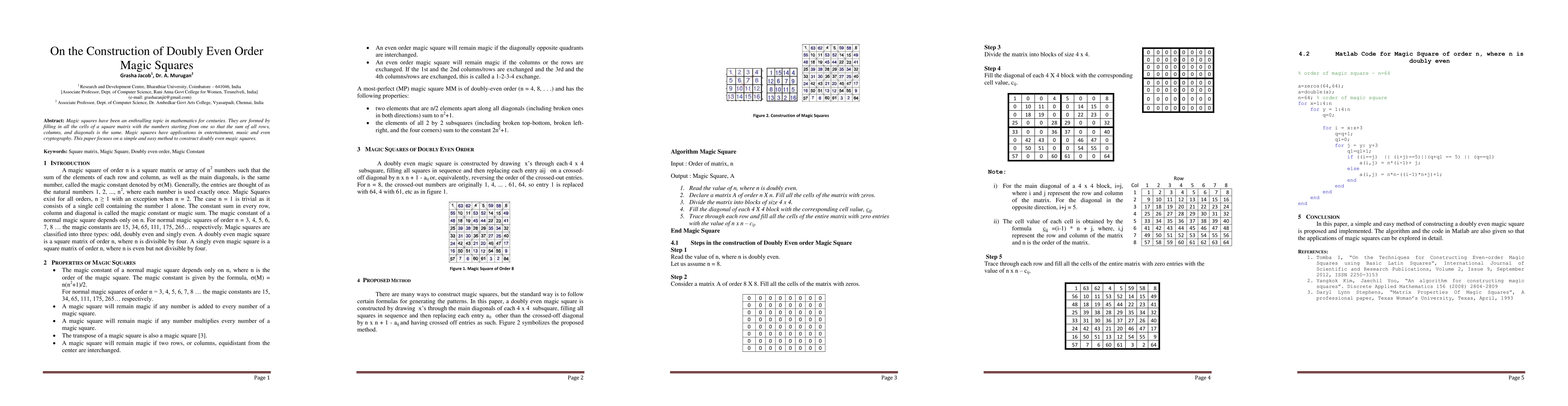 This paper presents a straightforward method for constructing doubly even magic squares, which are special magic squares where the order is even and the constant sum is twice the magic constant of singly even magic squares. The method has applications in various fields including entertainment, music, and cryptography.