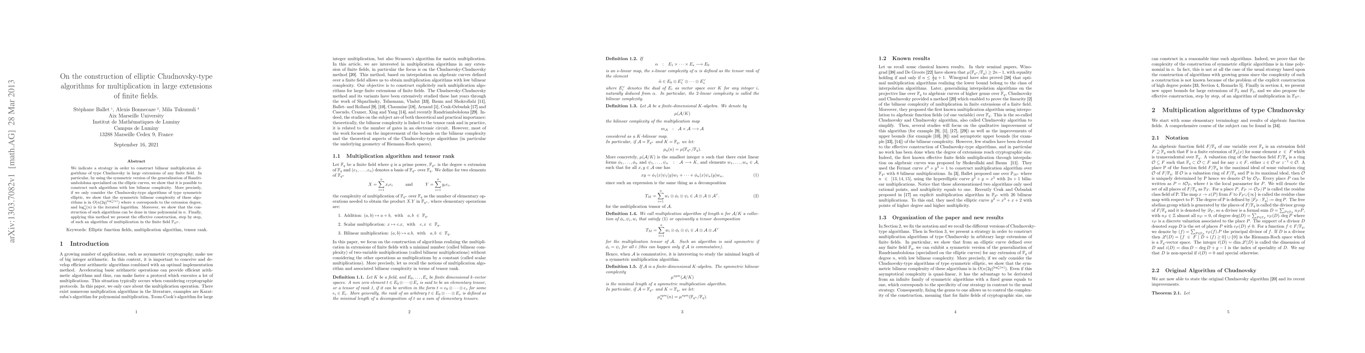 Researchers developed a method to construct efficient elliptic Chudnovsky-type algorithms for large finite field extensions, reducing bilinear complexity to O(n(2q)^( extit{log_q^*(n)})).