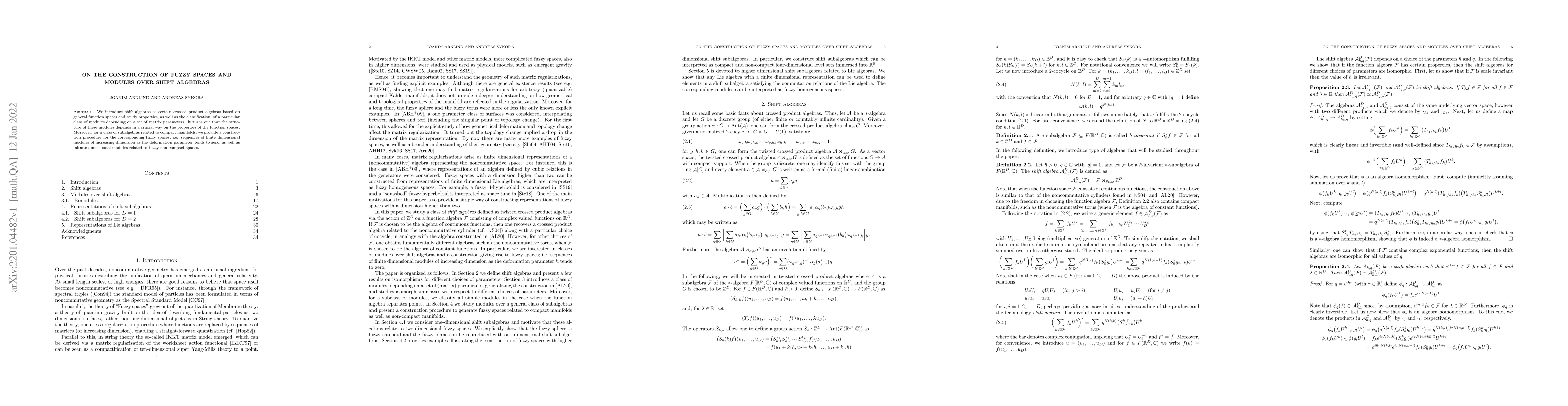 We introduce shift algebras as certain crossed product algebras based on general function spaces and study properties, as well as the classification, of a particular class of modules depending on a set of matrix parameters. It turns out that the structure of these modules depends in a crucial way on the properties of the function spaces. Moreover, for a class of subalgebras related to compact manifolds, we provide a construction procedure for the corresponding fuzzy spaces, i.e. sequences of finite dimensional modules of increasing dimension as the deformation parameter tends to zero, as well as infinite dimensional modules related to fuzzy non-compact spaces.