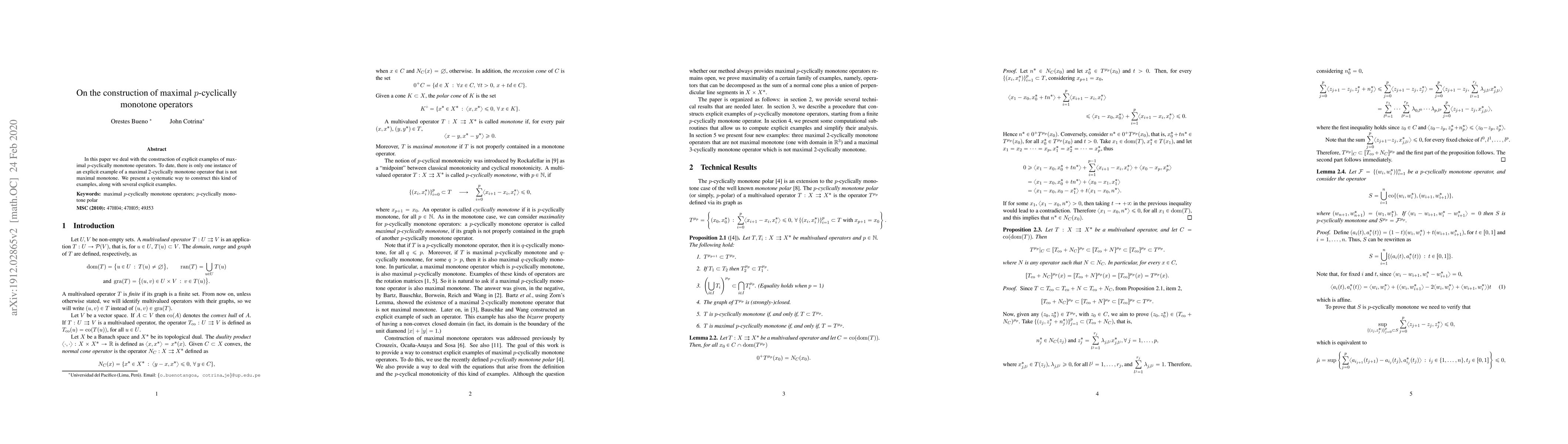 This paper introduces a method for constructing explicit examples of maximal $p$-cyclically monotone operators, focusing on those that are not maximal monotone, and provides several such examples.