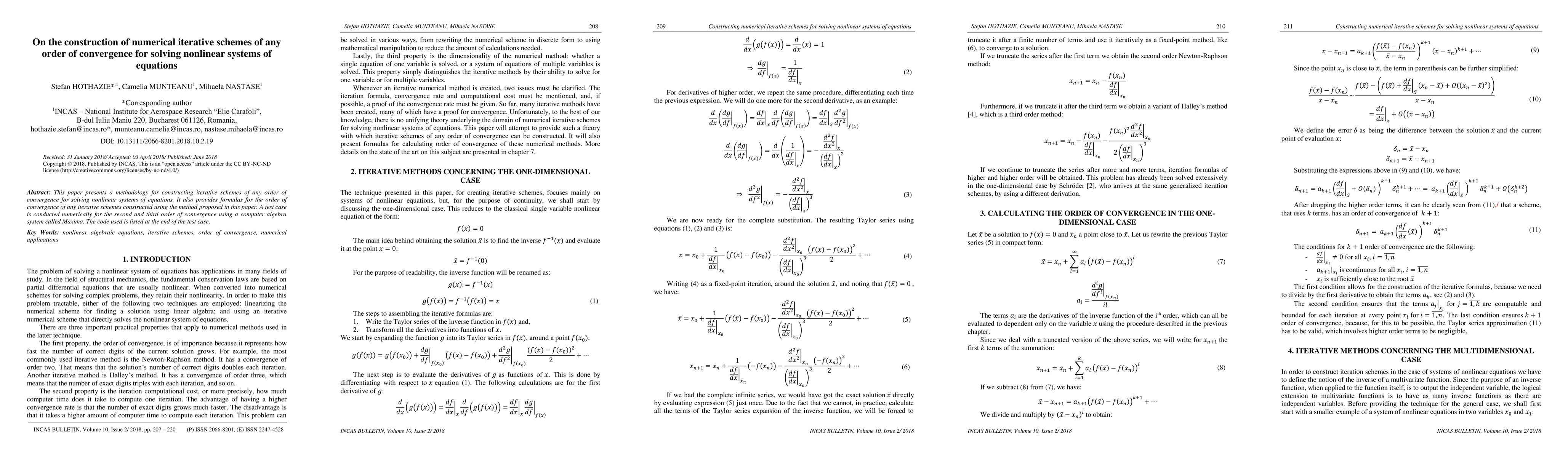 This paper presents a methodology for constructing iterative schemes of any order of convergence for solving nonlinear systems of equations. It also provides formulas for the order of convergence of any iterative schemes constructed using the method proposed in this paper. A test case is conducted numerically for the second and third order of convergence using a computer algebra system called Maxima. The code used is listed at the end of the test case.
