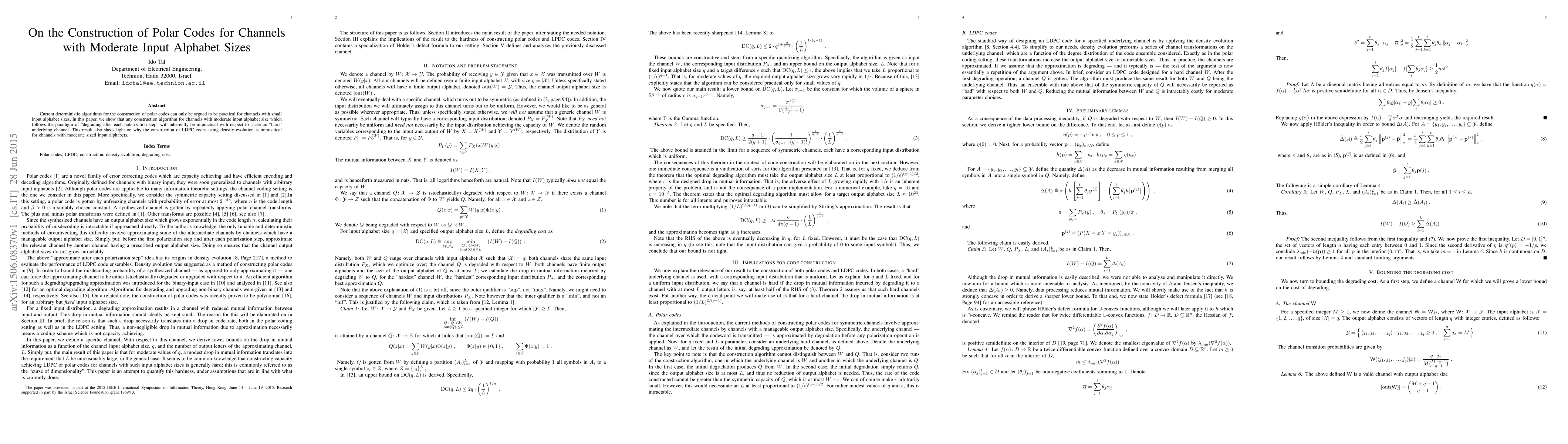 Research shows that deterministic algorithms for polar code construction are impractical for channels with moderate input alphabet sizes due to limitations in a specific underlying channel. This challenges the construction of LDPC codes using density evolution.