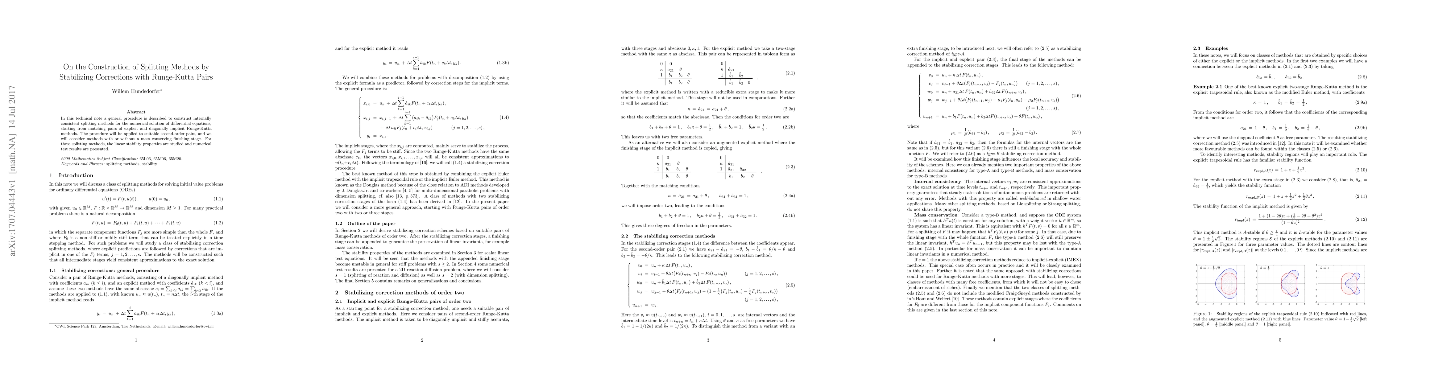 In this technical note a general procedure is described to construct internally consistent splitting methods for the numerical solution of differential equations, starting from matching pairs of explicit and diagonally implicit Runge-Kutta methods. The procedure will be applied to suitable second-order pairs, and we will consider methods with or without a mass conserving finishing stage. For these splitting methods, the linear stability properties are studied and numerical test results are presented.