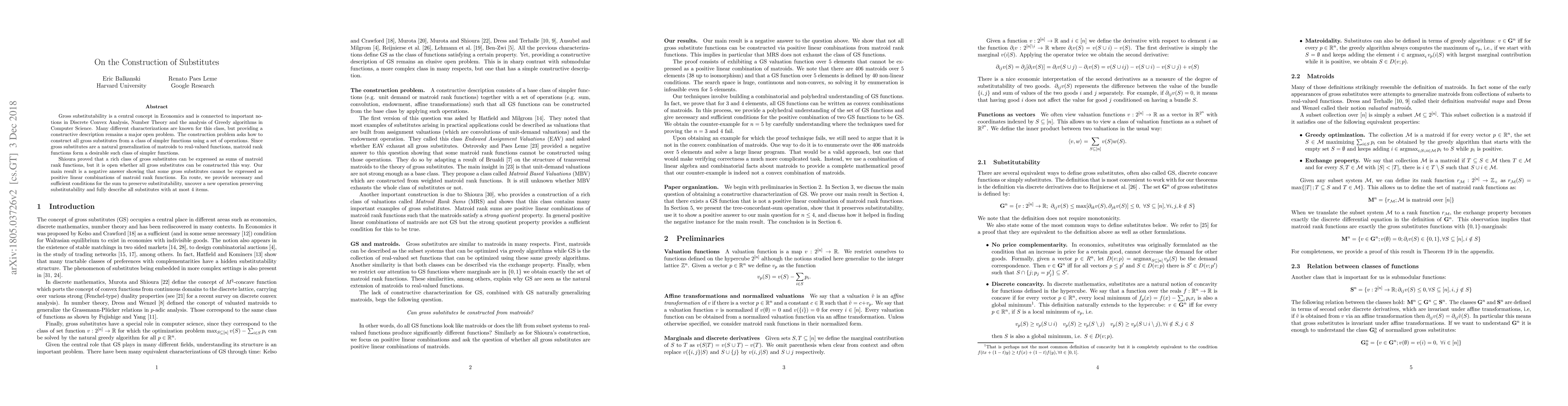 Gross substitutability is a central concept in Economics and is connected to important notions in Discrete Convex Analysis, Number Theory and the analysis of Greedy algorithms in Computer Science. Many different characterizations are known for this class, but providing a constructive description remains a major open problem. The construction problem asks how to construct all gross substitutes from a class of simpler functions using a set of operations. Since gross substitutes are a natural generalization of matroids to real-valued functions, matroid rank functions form a desirable such class of simpler functions. Shioura proved that a rich class of gross substitutes can be expressed as sums of matroid rank functions, but it is open whether all gross substitutes can be constructed this way. Our main result is a negative answer showing that some gross substitutes cannot be expressed as positive linear combinations of matroid rank functions. En route, we provide necessary and sufficient conditions for the sum to preserve substitutability, uncover a new operation preserving substitutability and fully describe all substitutes with at most 4 items.