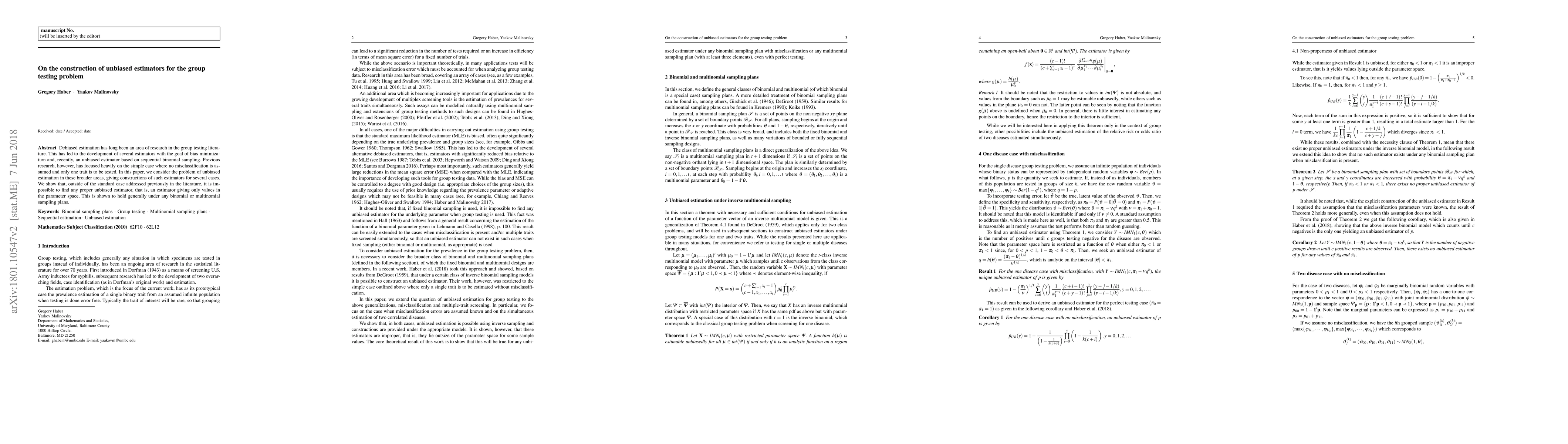 Researchers found that it is impossible to create unbiased estimators for group testing problems beyond the standard case, highlighting limitations in bias minimization methods.