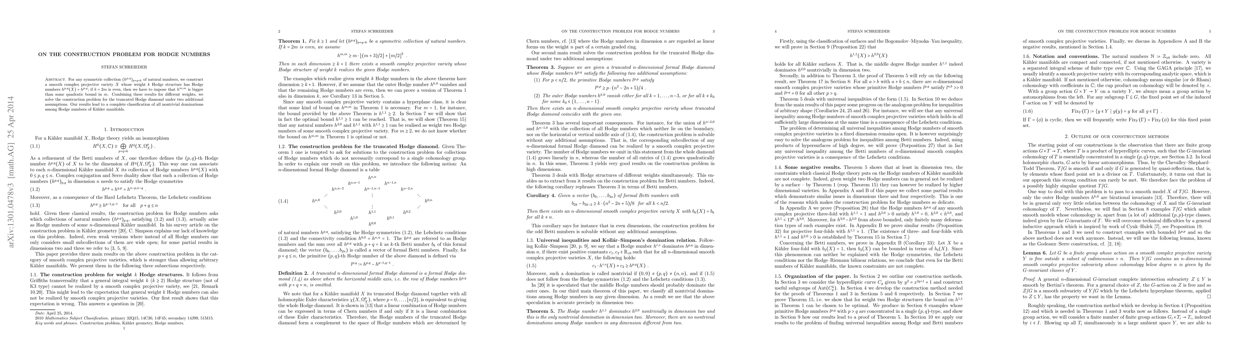 This paper constructs a smooth complex projective variety for any given symmetric collection of Hodge numbers, solving the construction problem for the truncated Hodge diamond under certain conditions. The results also classify all nontrivial dominations among Hodge numbers of Kaehler manifolds.