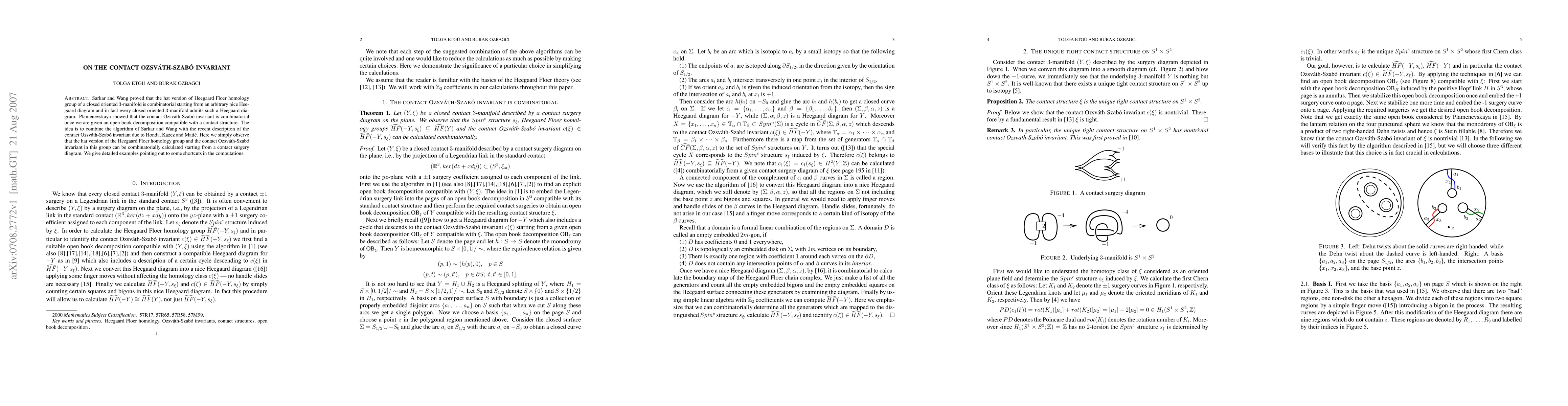 Sarkar and Wang proved that the hat version of Heegaard Floer homology group of a closed oriented 3-manifold is combinatorial starting from an arbitrary nice Heegaard diagram and in fact every closed oriented 3-manifold admits such a Heegaard diagram. Plamenevskaya showed that the contact Ozsvath-Szabo invariant is combinatorial once we are given an open book decomposition compatible with a contact structure. The idea is to combine the algorithm of Sarkar and Wang with the recent description of the contact Ozsvath-Szabo invariant due to Honda, Kazez and Matic. Here we simply observe that the hat version of the Heegaard Floer homology group and the contact Ozsvath-Szabo invariant in this group can be combinatorially calculated starting from a contact surgery diagram. We give detailed examples pointing out to some shortcuts in the computations.