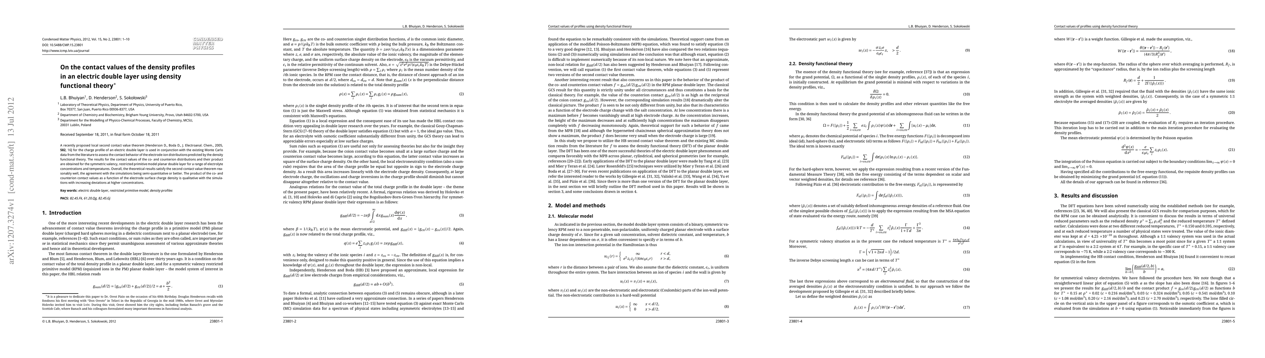 This paper applies a local second contact value theorem to density functional theory predictions of electric double layer charge profiles, comparing them to Monte Carlo simulation data. The study finds that the theoretical contact values for co- and counterion distributions align semi-quantitatively with simulations, though deviations increase at higher electrolyte concentrations.