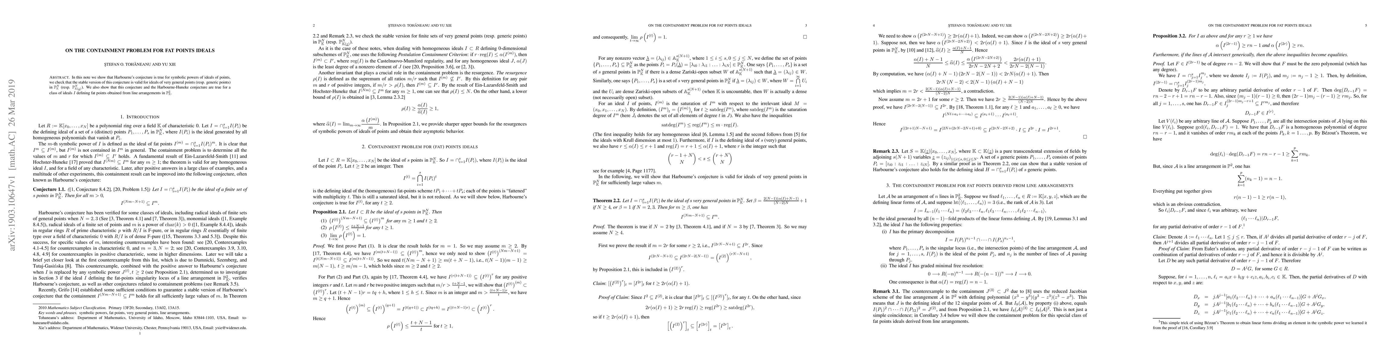 In this note we show that Harbourne's conjecture is true for symbolic powers of ideals of points, we check that the stable version of this conjecture is valid for ideals of very general points (resp. generic points) in $\mathbb P_{\mathbb K}^N$ (resp. $\mathbb P_{\mathbb K(\underline{z})}^N$). We also show that this conjecture and the Harbourne-Huneke conjecture are true for a class of ideals $I$ defining fat points obtained from line arrangements in $\mathbb P_{\mathbb K}^2$.