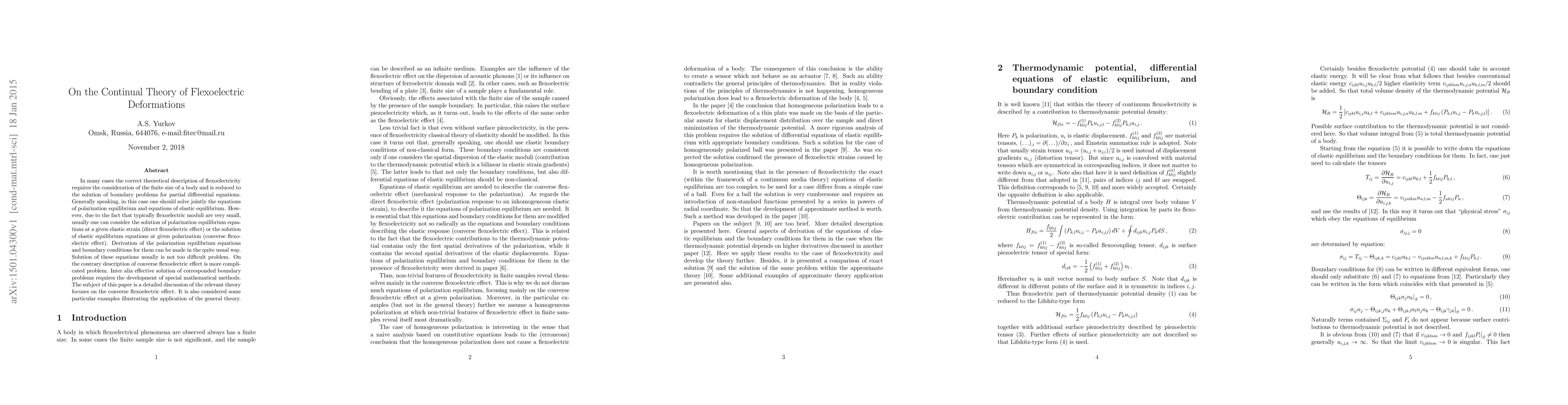 This paper discusses the theoretical framework for understanding flexoelectricity, emphasizing the converse flexoelectric effect where polarization influences elastic deformations. It highlights the complexity of solving associated boundary problems and presents special mathematical methods for effective solutions, supplemented by specific illustrative examples.