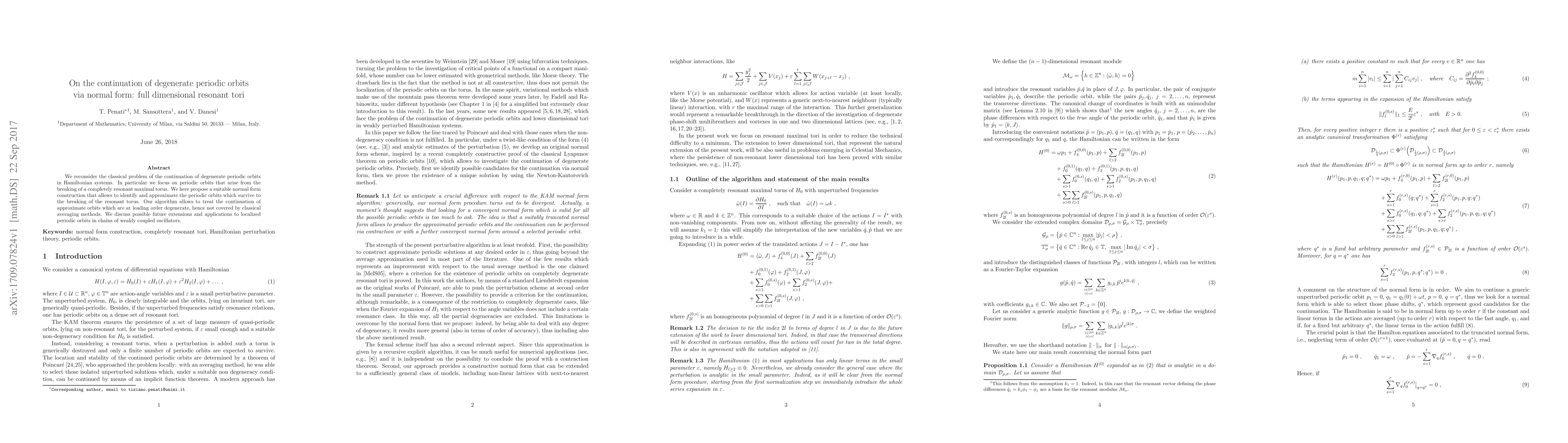 The paper proposes a normal form construction for Hamiltonian systems to identify and approximate degenerate periodic orbits arising from the breaking of a completely resonant maximal torus, extending classical averaging methods to approximate orbits that are degenerate at leading order.