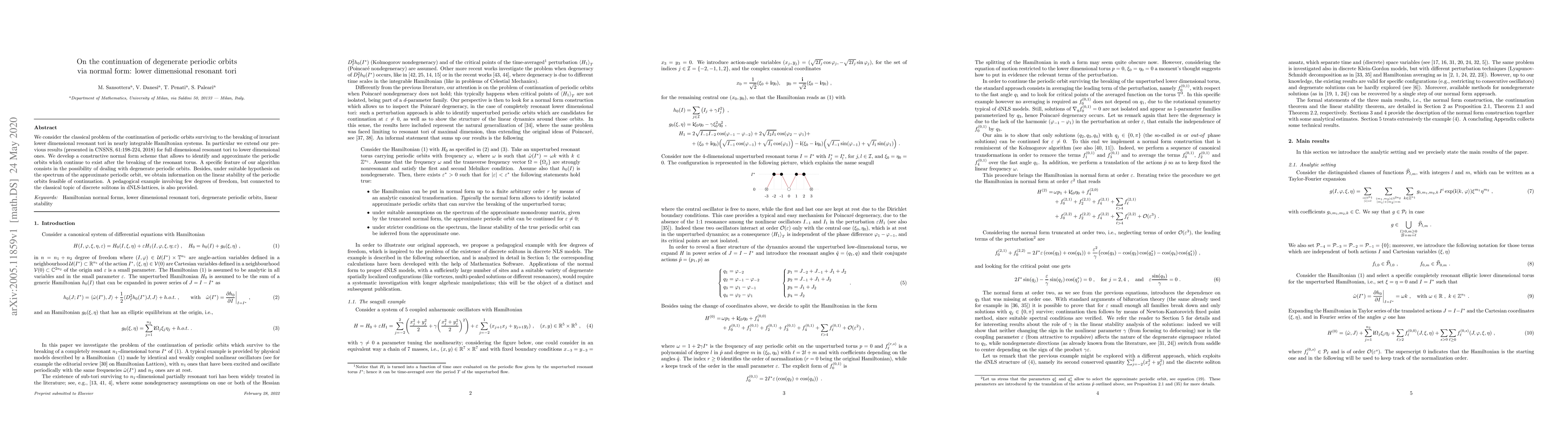 We consider the classical problem of the continuation of periodic orbits surviving to the breaking of invariant lower dimensional resonant tori in nearly integrable Hamiltonian systems. In particular we extend our previous results (presented in CNSNS, 61:198-224, 2018) for full dimensional resonant tori to lower dimensional ones. We develop a constructive normal form scheme that allows to identify and approximate the periodic orbits which continue to exist after the breaking of the resonant torus. A specific feature of our algorithm consists in the possibility of dealing with degenerate periodic orbits. Besides, under suitable hypothesis on the spectrum of the approximate periodic orbit, we obtain information on the linear stability of the periodic orbits feasible of continuation. A pedagogical example involving few degrees of freedom, but connected to the classical topic of discrete solitons in dNLS-lattices, is also provided.