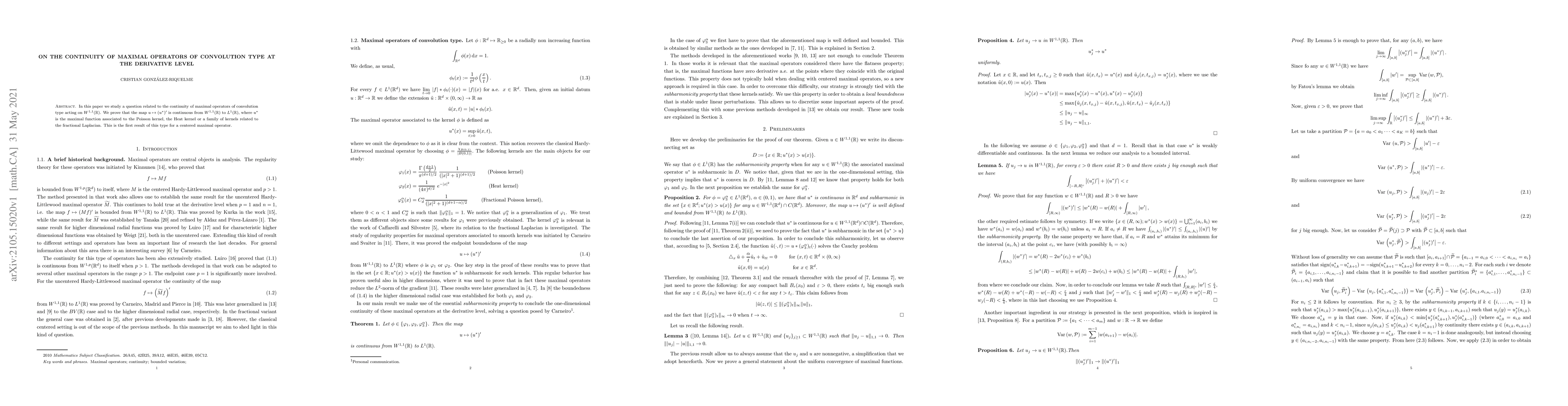In this paper we study a question related to the continuity of maximal operators of convolution type acting on $W^{1,1}(\mathbb{R})$. We prove that the map $u\mapsto (u^{*})'$ is continuous from $W^{1,1}(\mathbb{R})$ to $L^{1}(\mathbb{R})$, where $u^{*}$ is the maximal function associated to the Poisson kernel, the Heat kernel or a family of kernels related to the fractional Laplacian. This is the first result of this type for a centered maximal operator.