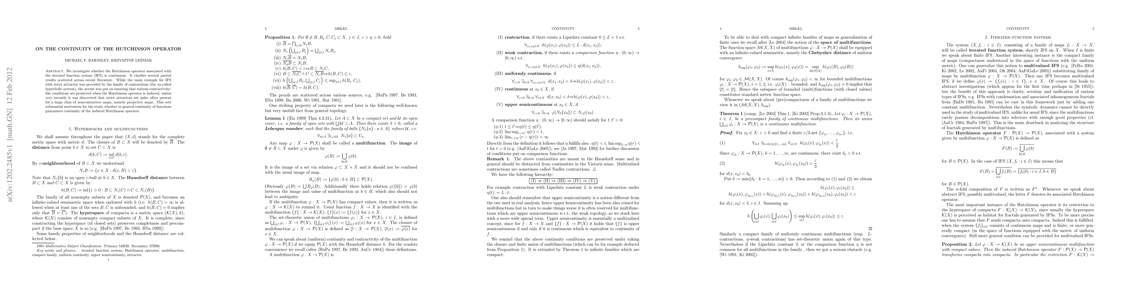 This paper examines the continuity of the Hutchinson operator linked to an iterated function system (IFS), addressing whether continuity of the underlying functions ensures the continuity of the induced operator. It seeks to clarify existing partial results and extends the discussion to noncontractive maps, particularly projective maps, revealing the presence of strict attractors in many cases.