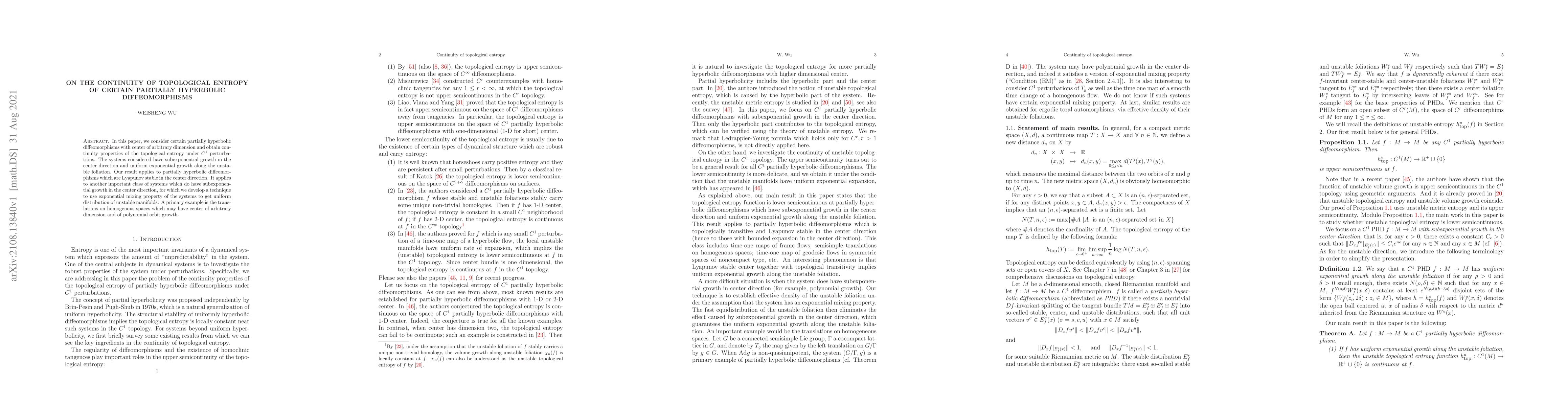 This paper investigates the continuity of topological entropy for certain partially hyperbolic diffeomorphisms under $C^1$ perturbations, focusing on systems with subexponential growth in the center direction and uniform exponential growth along the unstable foliation. The authors develop techniques to handle systems with polynomial orbit growth, such as translations on homogeneous spaces.
