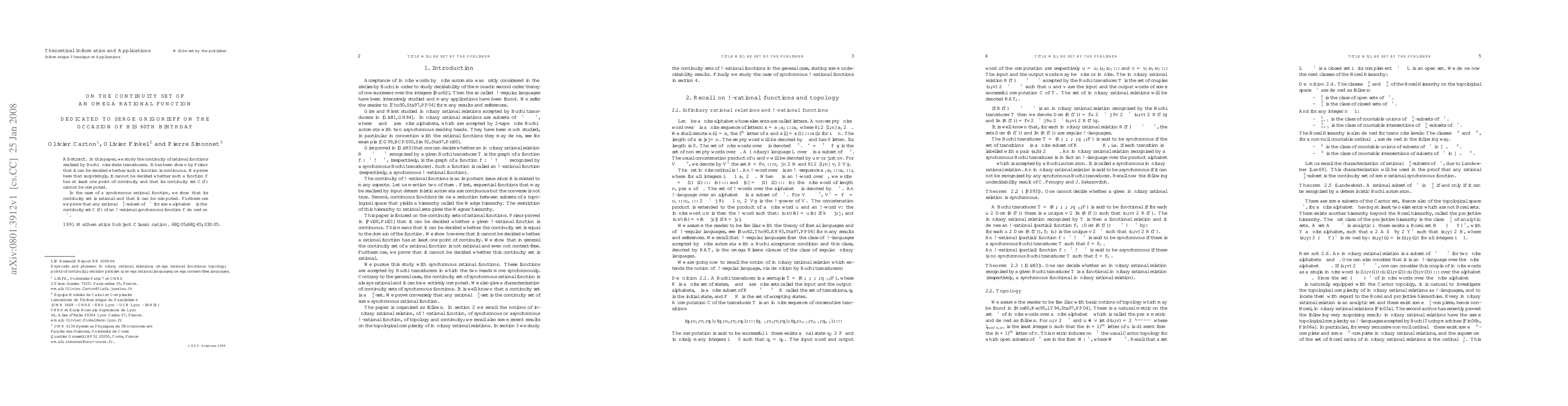 This paper investigates the continuity of rational functions represented by Büchi finite state transducers, proving that determining the existence of continuity points and computing the continuity set is undecidable. For synchronous rational functions, it shows that their continuity sets are rational and computable, and establishes a connection between rational Pi^0_2-subsets and continuity sets of omega-rational synchronous functions.