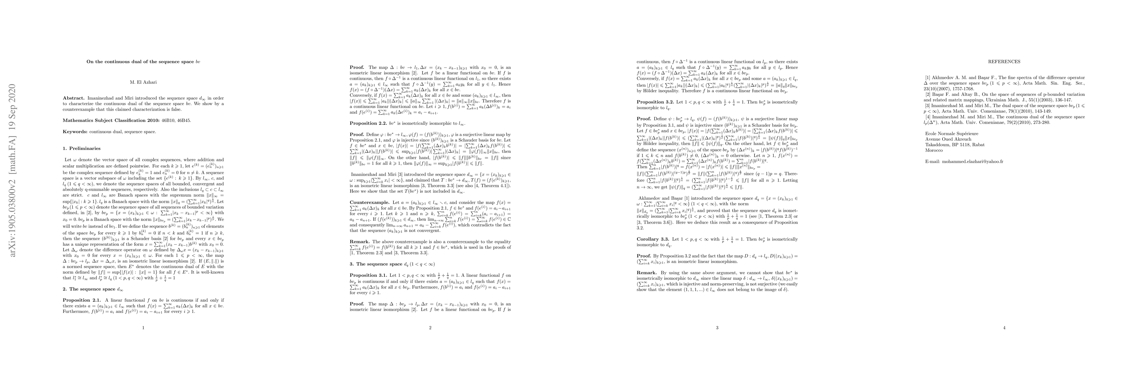 Imaninezhad and Miri introduced the sequence space $ d_{\infty} $ in order to characterize the continuous dual of the sequence space $ bv. $ We show by a counterexample that this claimed characterization is false.