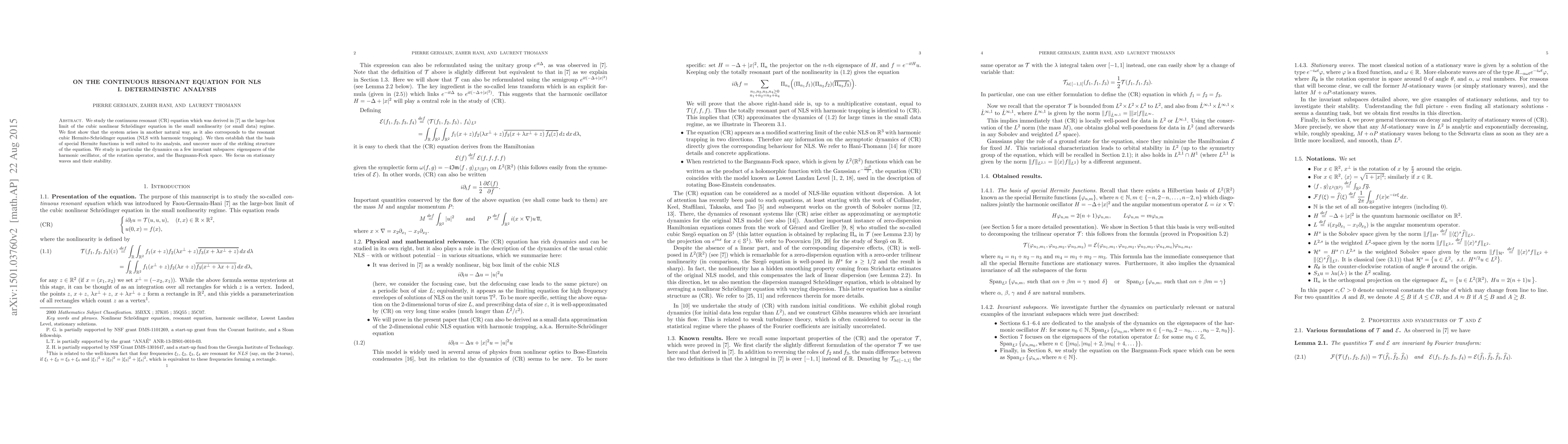 This research paper studies the continuous resonant equation for nonlinear Schr"odinger equations, focusing on its structure, stability of stationary waves, and invariant subspaces.