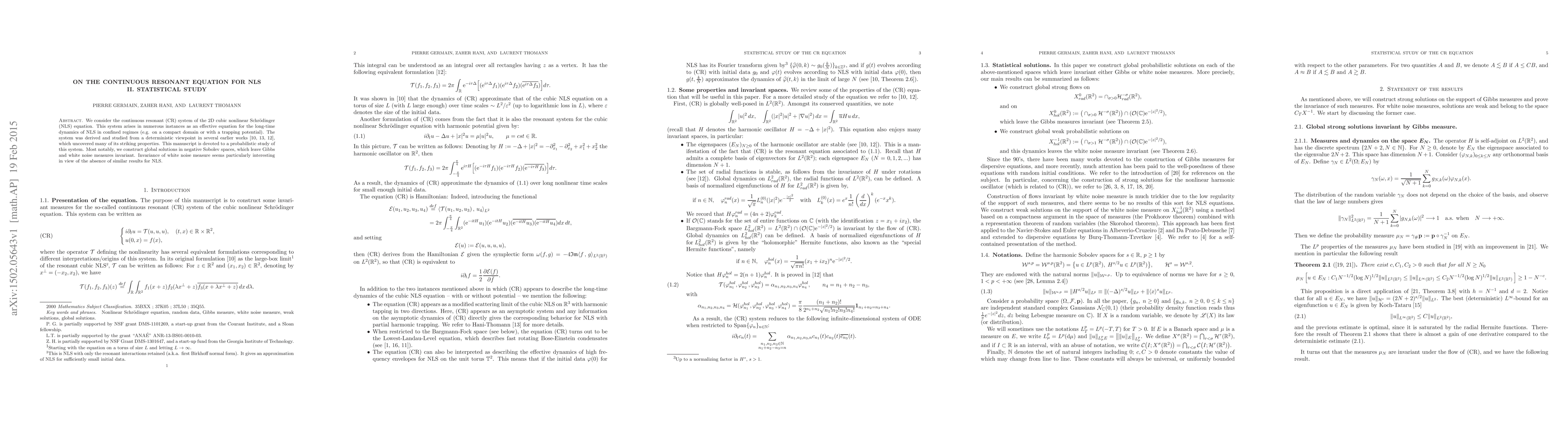 Researchers studied the continuous resonant system of the 2D cubic nonlinear Schrödinger equation, finding global solutions that preserve specific probability measures, and highlighting the system's unique properties compared to similar equations like the nonlinear Schrödinger equation.