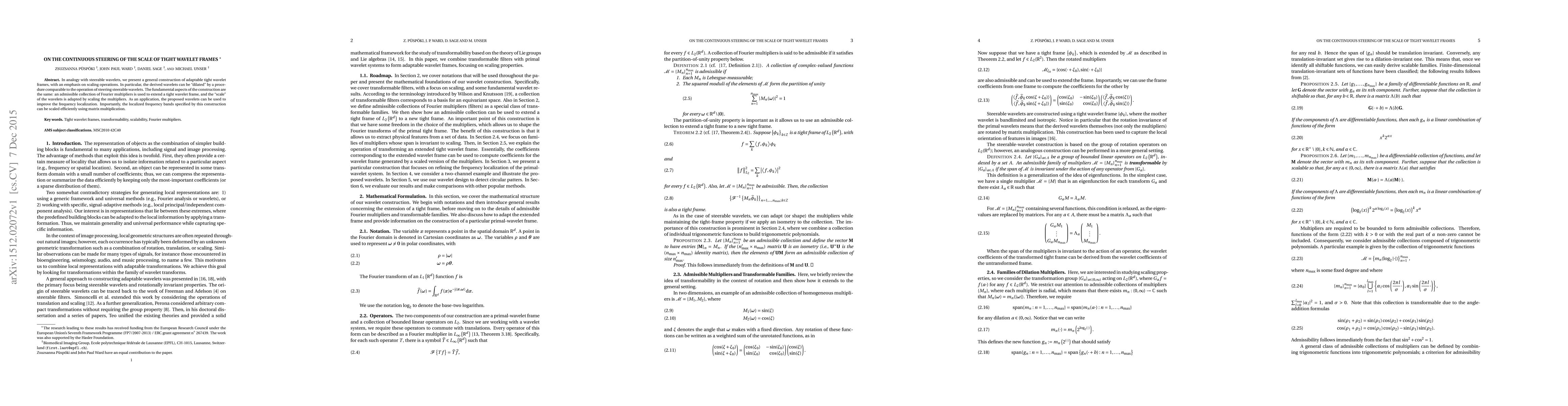 The paper introduces a novel method for continuously steering the scale of tight wavelet frames using admissible collections of Fourier multipliers, enabling efficient dilation and frequency localization of wavelets.
