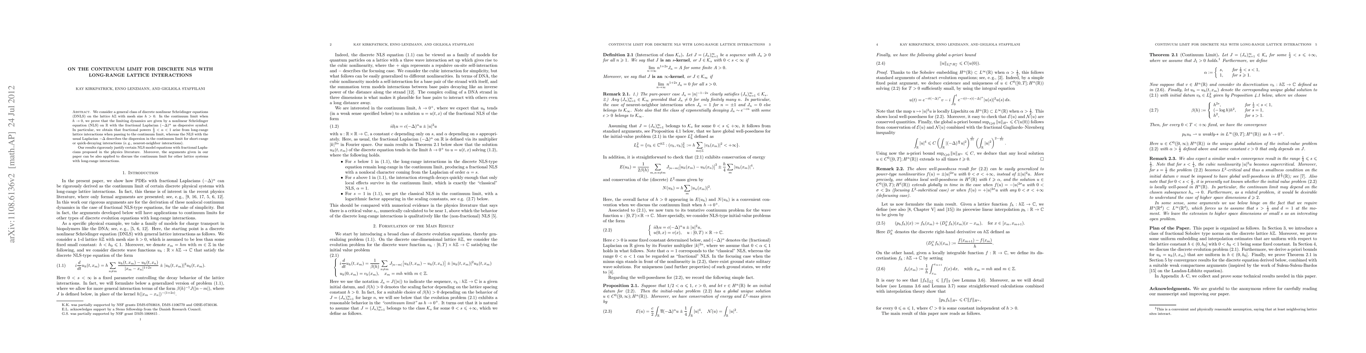 This paper proves that discrete nonlinear Schrödinger equations on lattices with long-range interactions converge to a nonlinear Schrödinger equation with a fractional Laplacian in the continuum limit, contrasting with short-range interactions that yield a standard Laplacian. The study rigorously supports proposed fractional Laplacian models in physics.