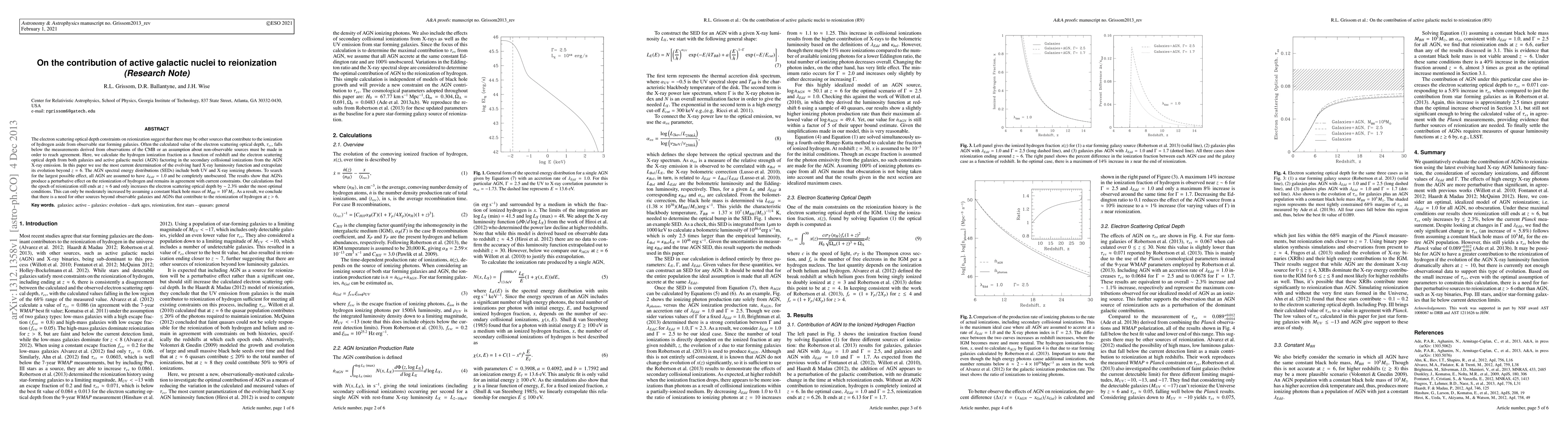 This research investigates the contribution of active galactic nuclei (AGN) to the reionization of hydrogen, finding that while AGNs have a perturbative effect, they do not fully account for the reionization process at z > 6. The study concludes that additional, non-observable sources are likely necessary to explain the observed electron scattering optical depth.
