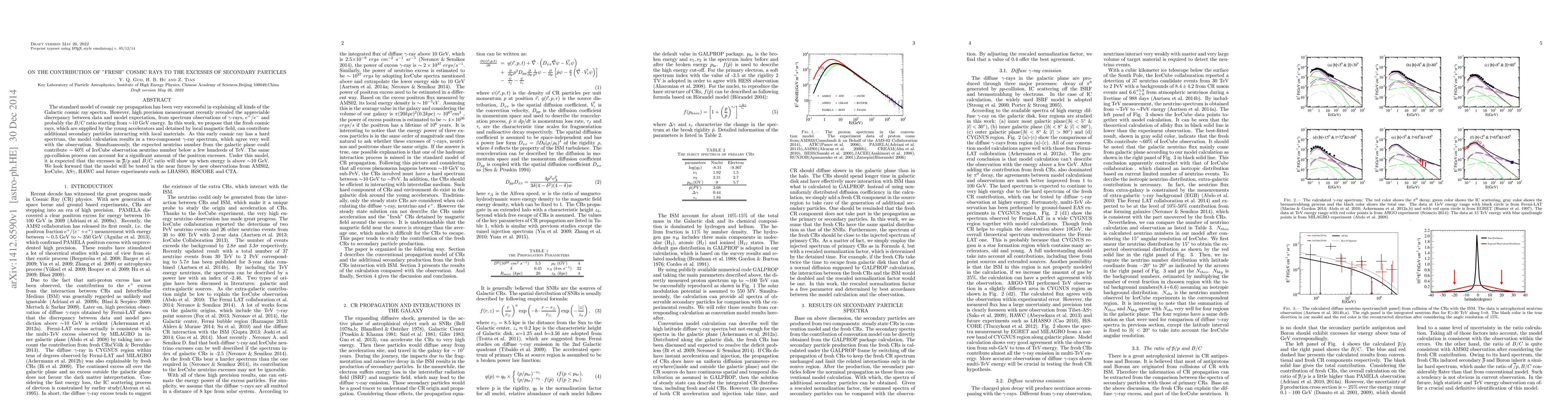 This study proposes that fresh cosmic rays contribute to excesses of secondary particles in high-energy astrophysics observations, resolving discrepancies between model predictions and experimental data.