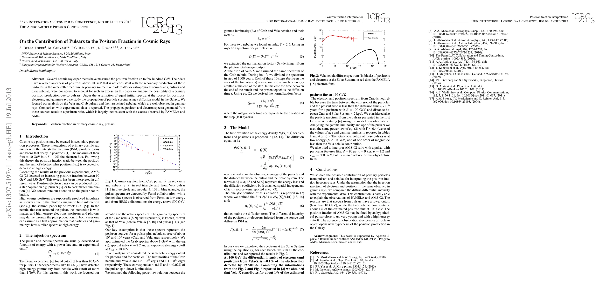 This paper investigates whether pulsars, particularly the Vela and Crab pulsars, could be a primary source of the positron excess observed in cosmic rays. Using a diffusion model, the study finds that the positron spectra from these sources do not match the experimental data, suggesting pulsars are unlikely to account for the observed positron fraction excess.