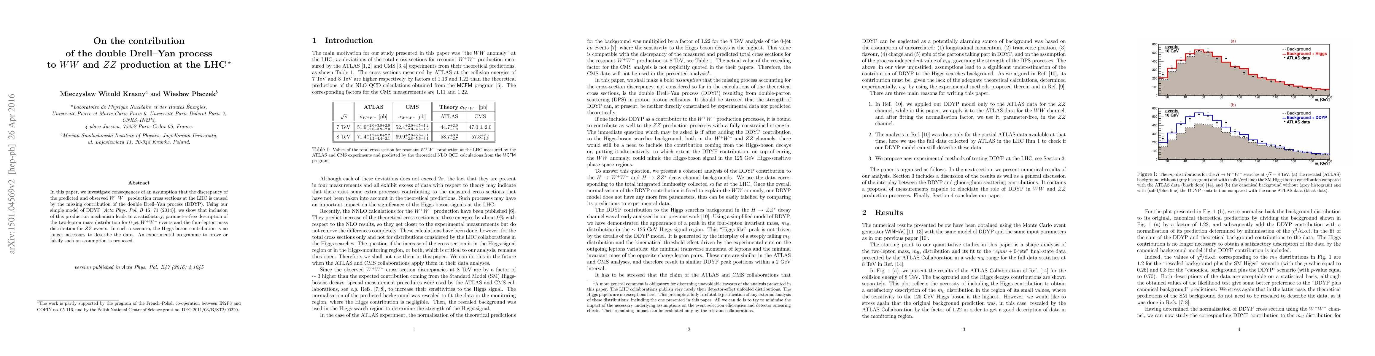 In this paper we investigate consequences of an assumption that the discrepancy of the predicted and observed W+W- production cross sections at the LHC is caused by the missing contribution of the double Drell-Yan process (DDYP). Using our simple model of DDYP of Ref. [1] we show that inclusion of this production mechanism leads to a satisfactory, parameter-free description of the two-lepton mass distribution for 0-jet W+W- events and the four-lepton mass distribution for ZZ events. In such a scenario the Higgs-boson contribution is no longer necessary to describe the data. An experimental programme to prove or falsify such an assumption is proposed.